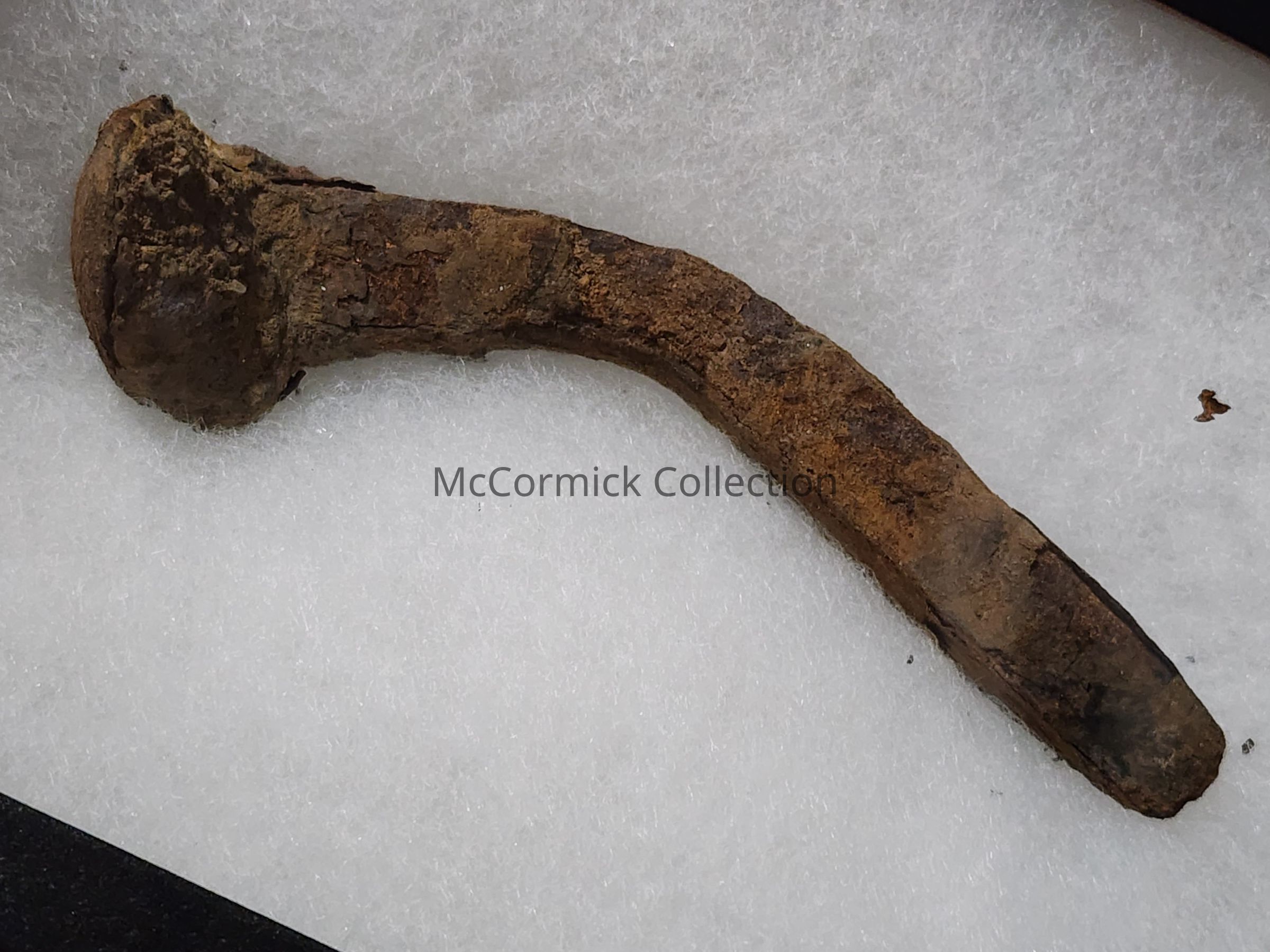 Lansing interurban railway spike from North Washington Avenue. Recovered from a wood tie, along with a piece of a wood tie, and old brick street pavers in 2019 during road construction.