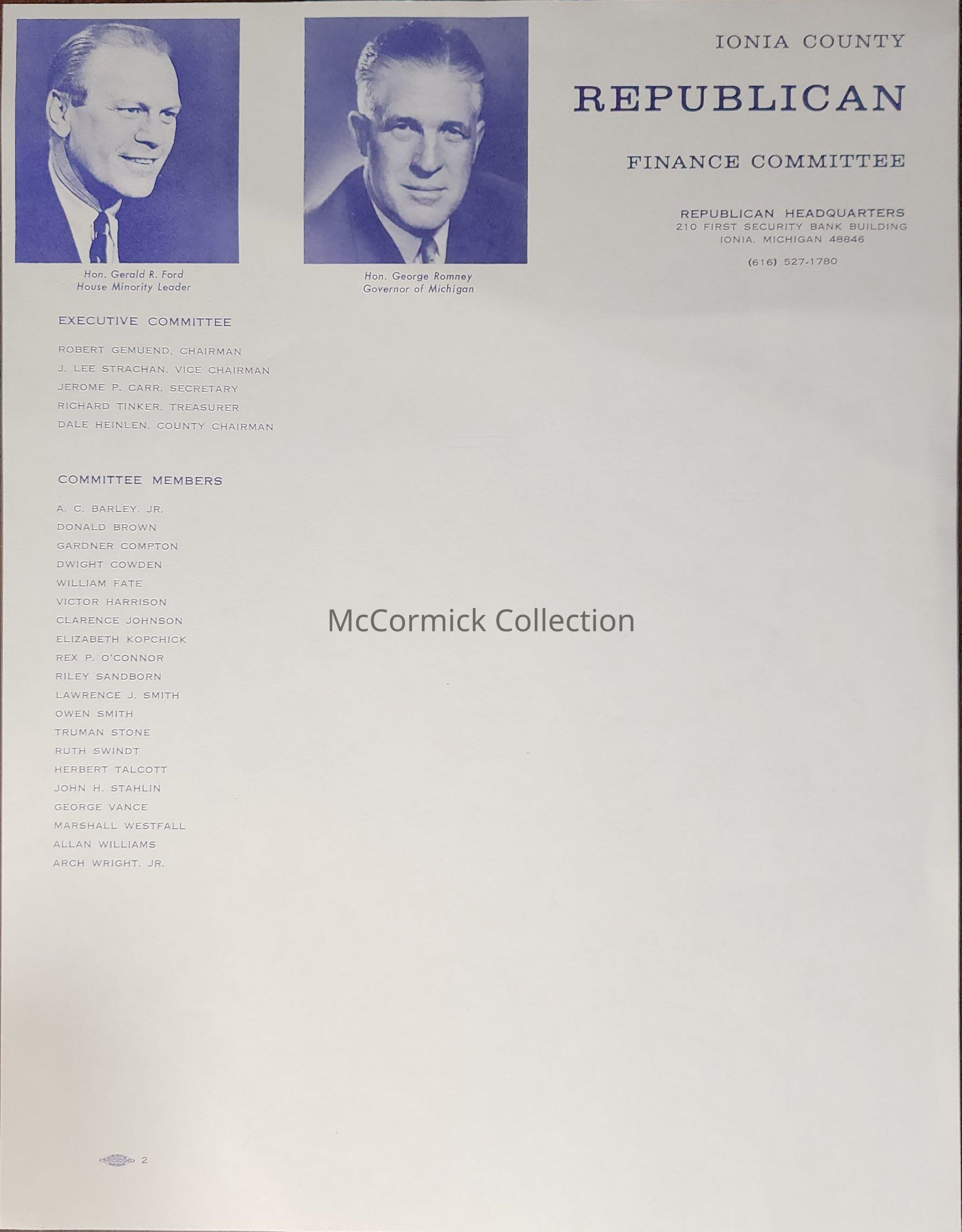 A stationery or letterhead featuring George Romney and Gerald Ford, circa 1960s.
