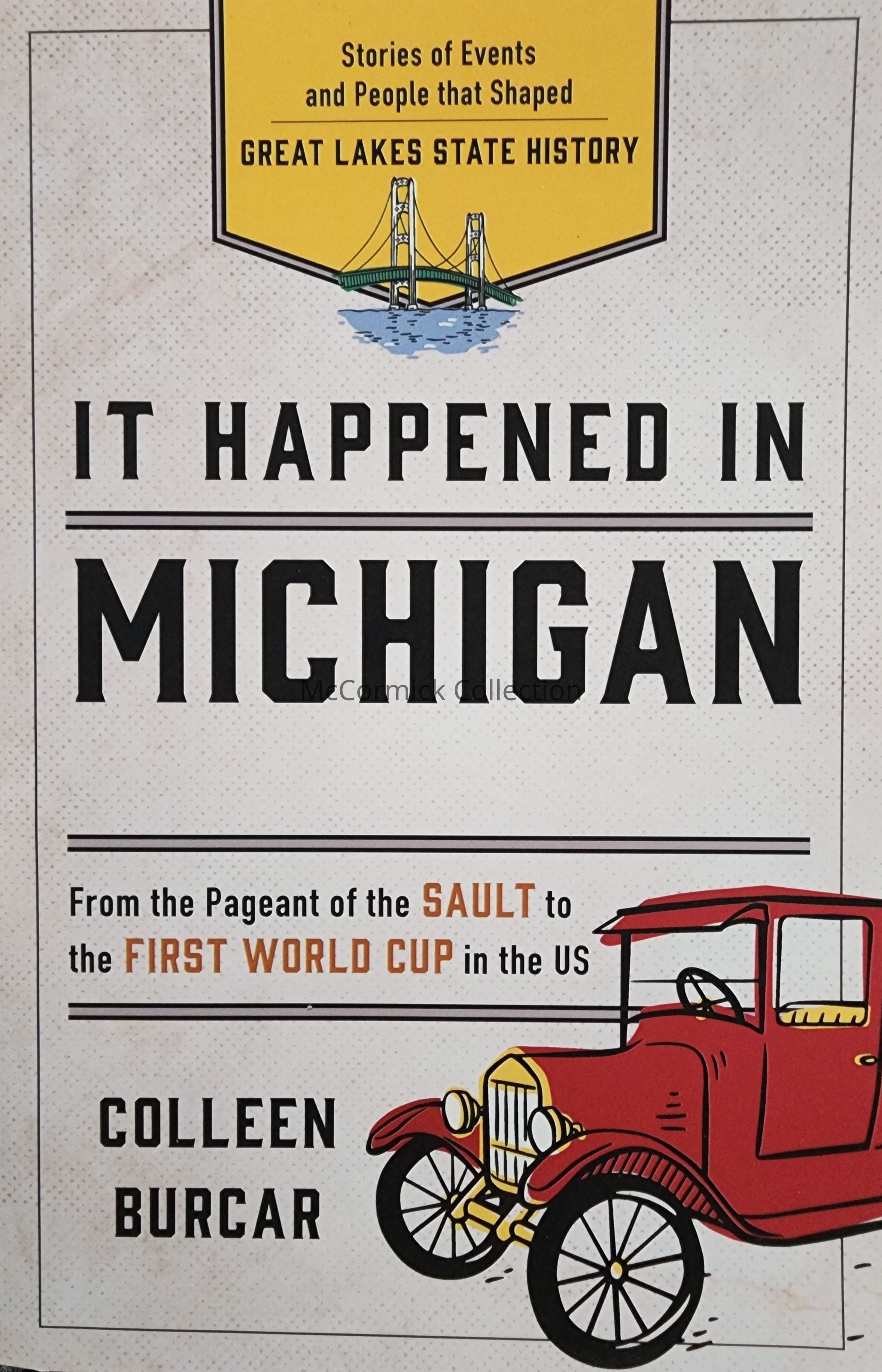 Stories of Events and People that Shaped Great Lakes State History / It Happened in Michigan / From the Pageant of the Sault to the First World Cup in the US. By Colleen Burcar, 2019.