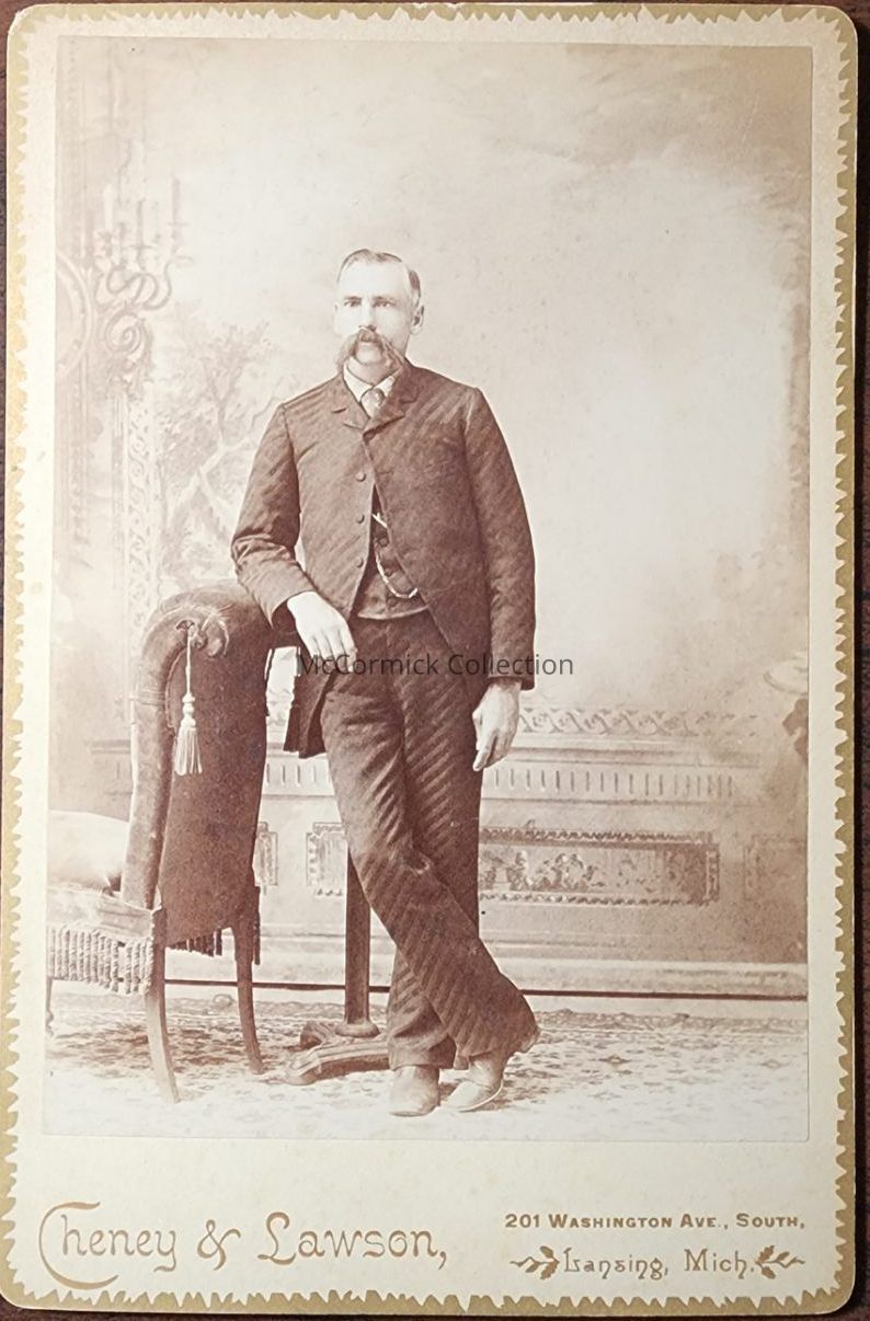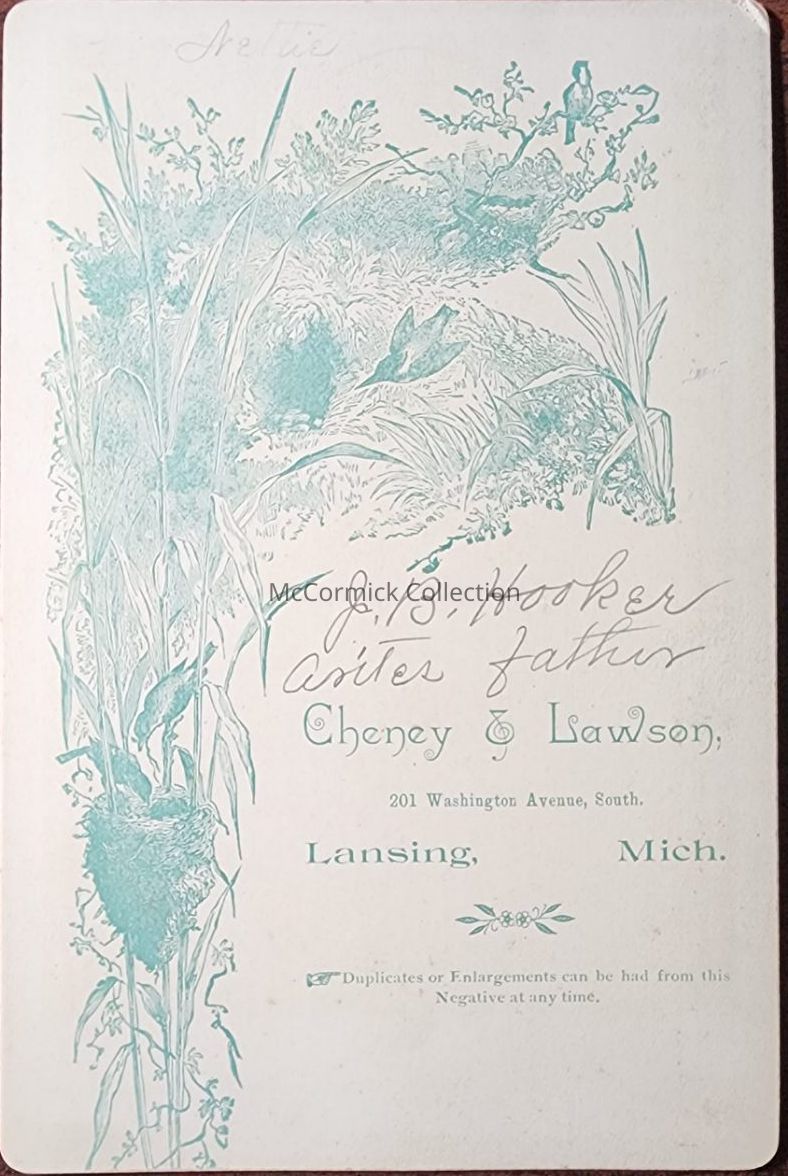 Cabinet card photograph of J.B. Hooker by Lansing photographer Cheney and Lawson.