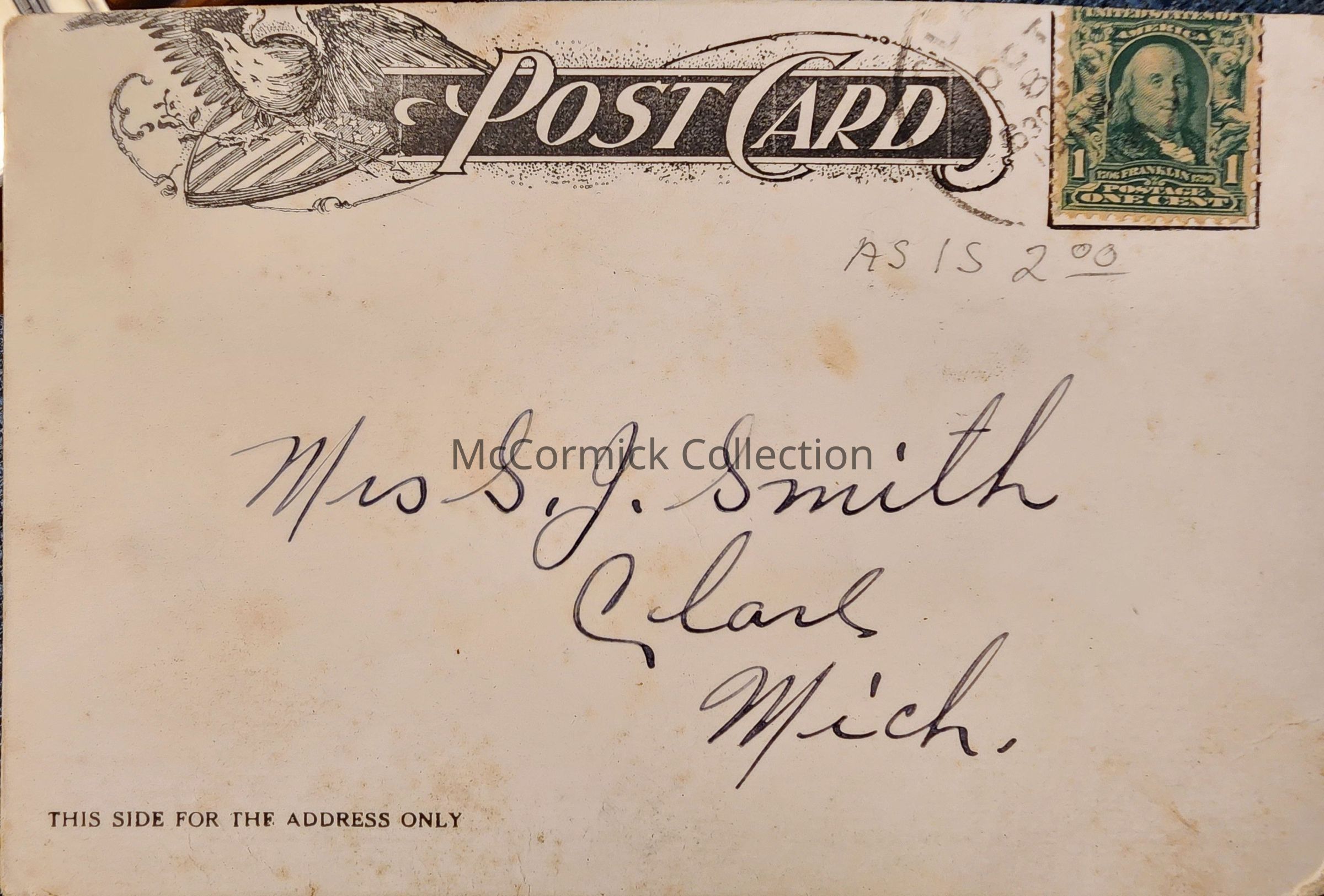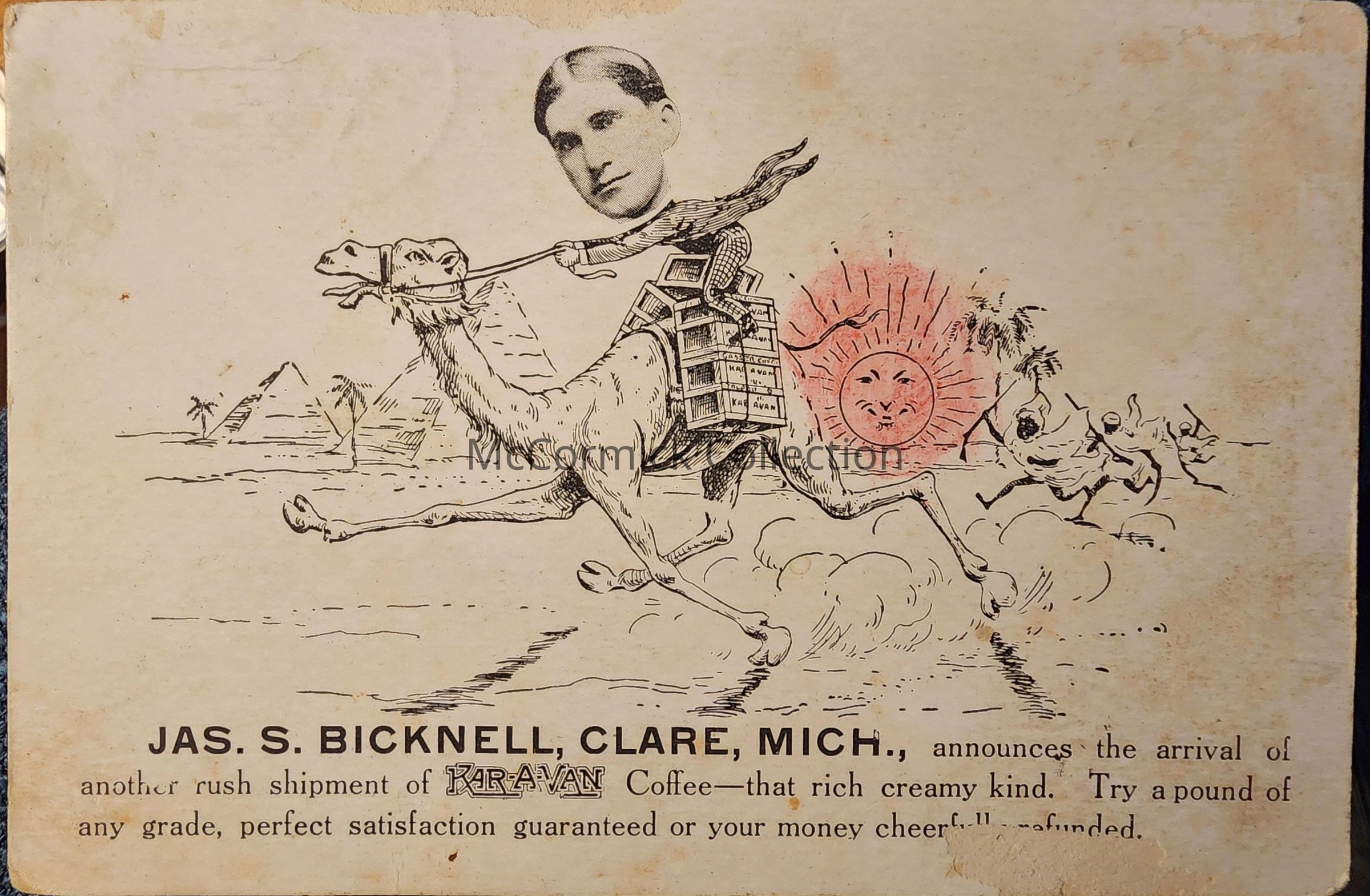 Jas. S. Bicknell, Clare, Mich., Advertising Postcard