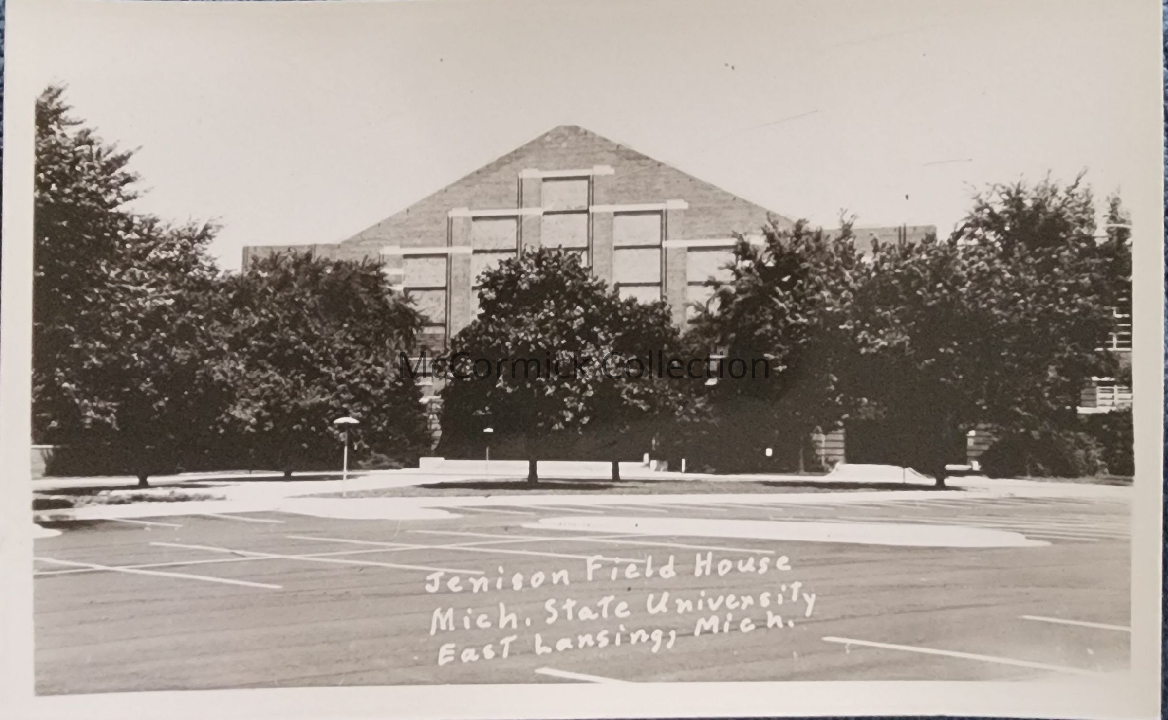 Real photo postcard of Jenison Field House, Michigan State University, East Lansing, Michigan.