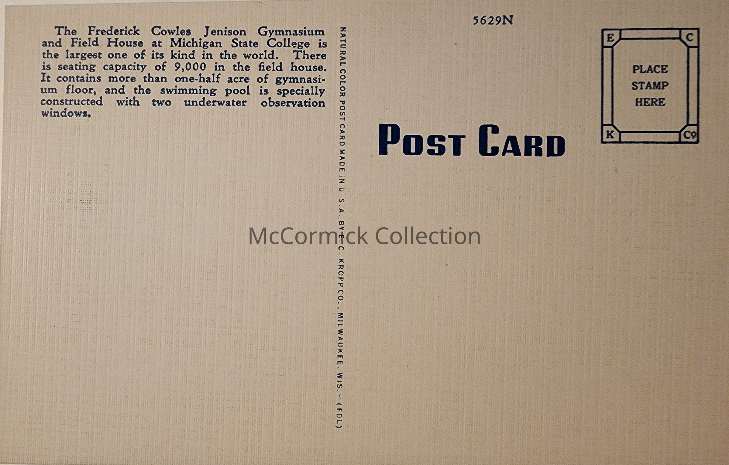 Jenison Field House, Michigan State College, Lansing, Michigan, Postcard