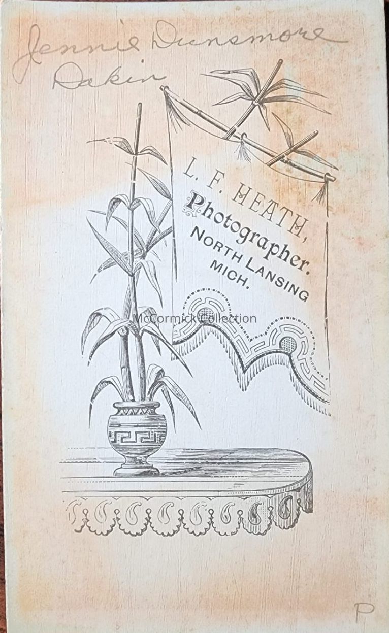 Carte de visite photograph of Jennie Dunsmore Dakin by Lansing photographer Heath.
