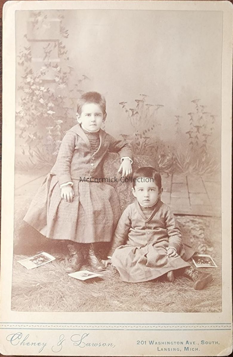 Cabinet card photograph of Jesse Wright and Walter Jay Crandall by Lansing photographer Cheney and Lawson in October 1889.