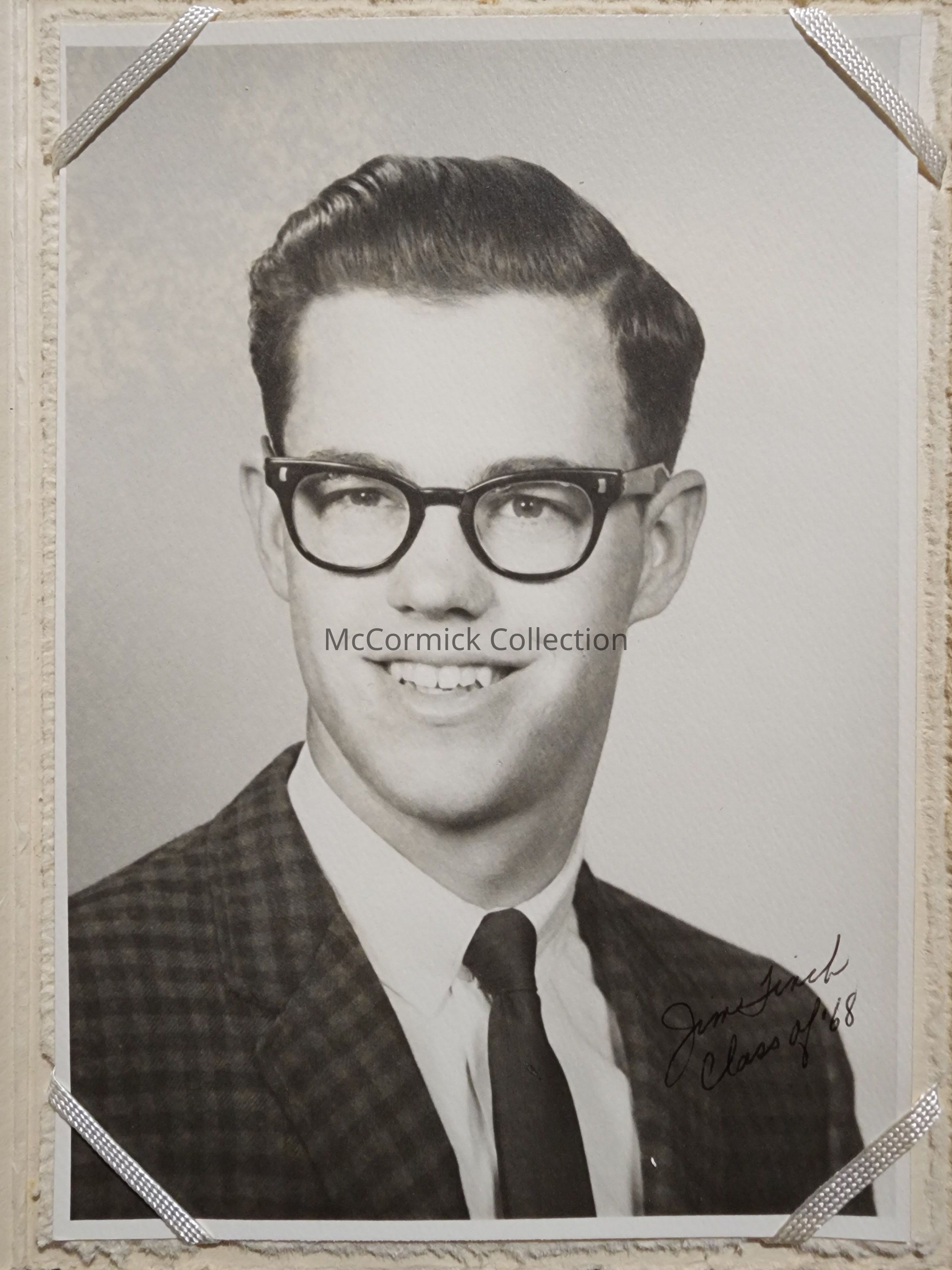 Folder mounted photograph of Jim Finch, class of 1968, by Lansing photographer Kowalksi Capitol Color Craft.