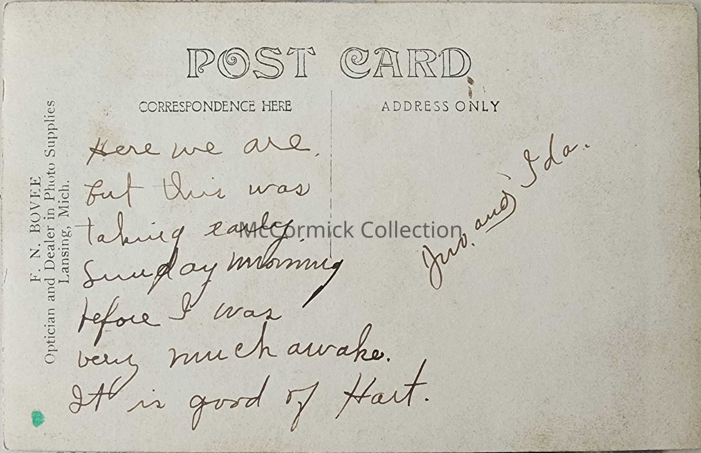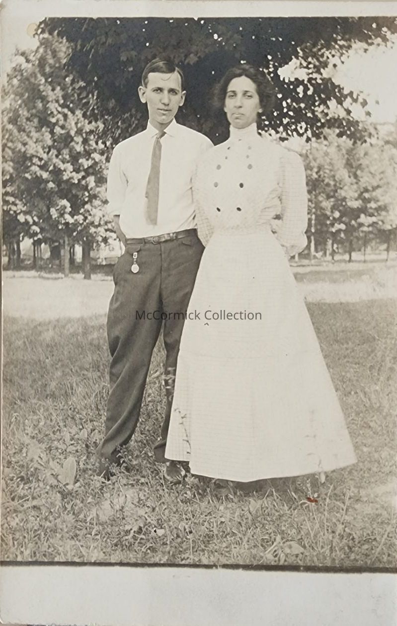 Real photo postcard of a Man and woman, Jno. and Ida, by Lansing photographer Bovee.