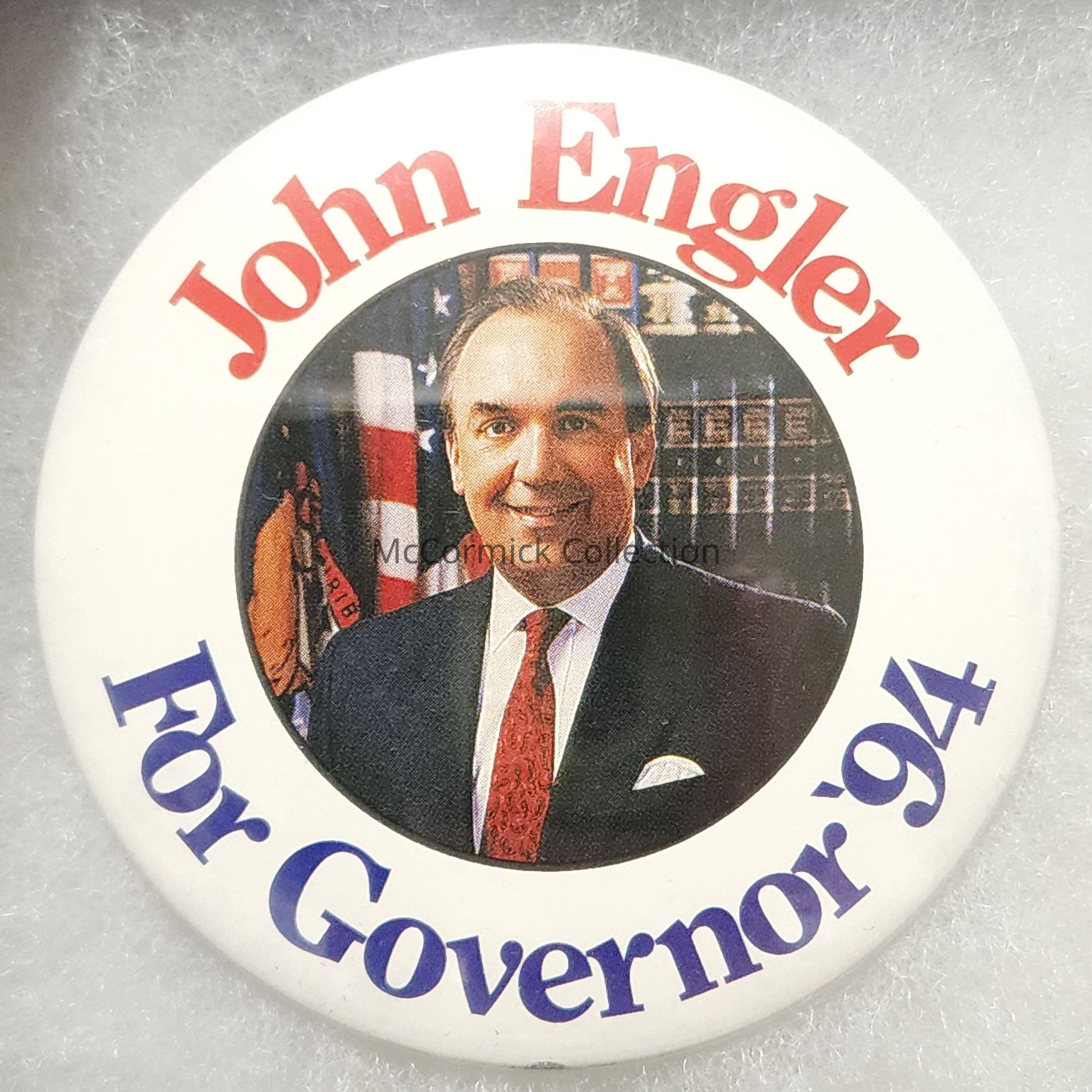 A 3" Color picture button for John Engler for Governor in 1994.