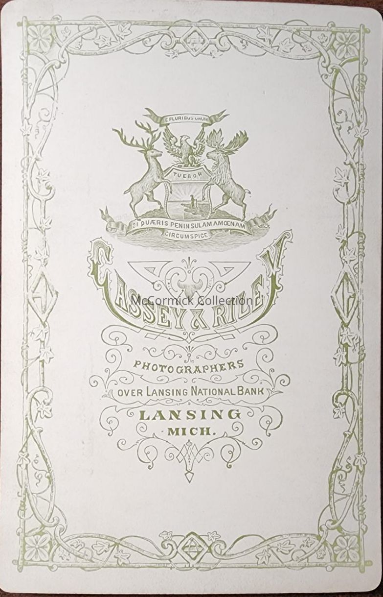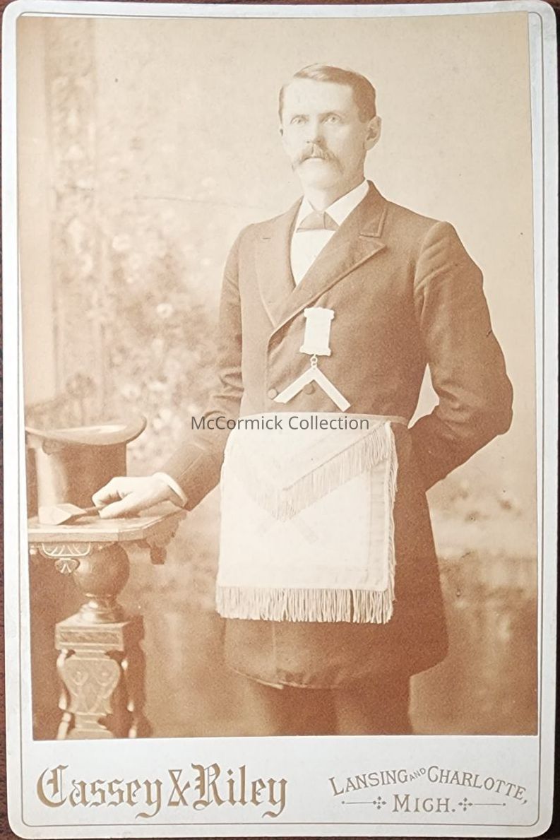 Cabinet card photograph of John H. Chase wearing Masonic apron and other accessories. Photo by Lansing photographer Cassey and Riley. From Chase Collection.
