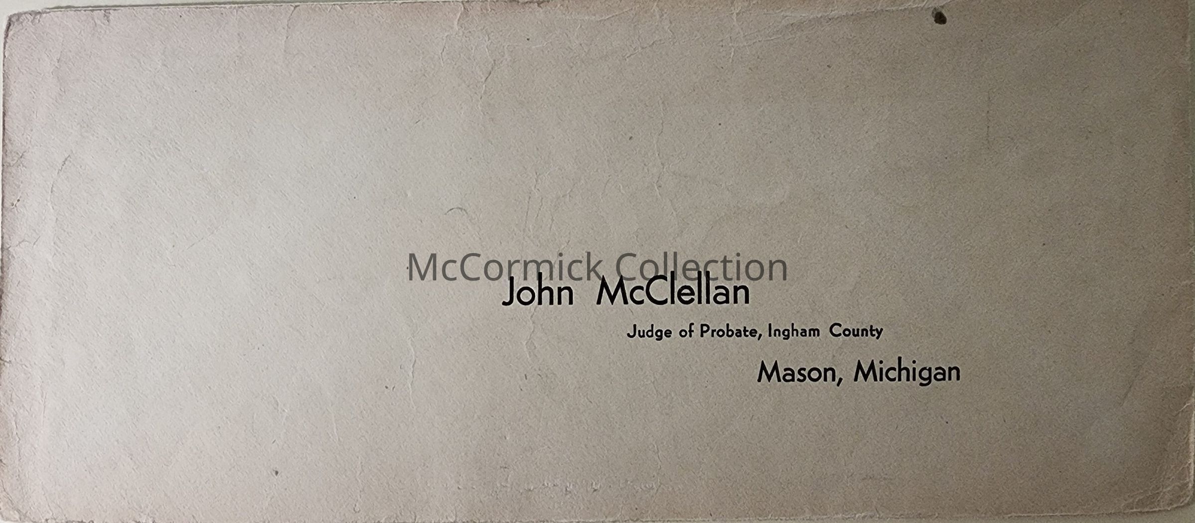 John McClellan, Judge of Probate, Ingham County, Mason, Michigan Postal Cover