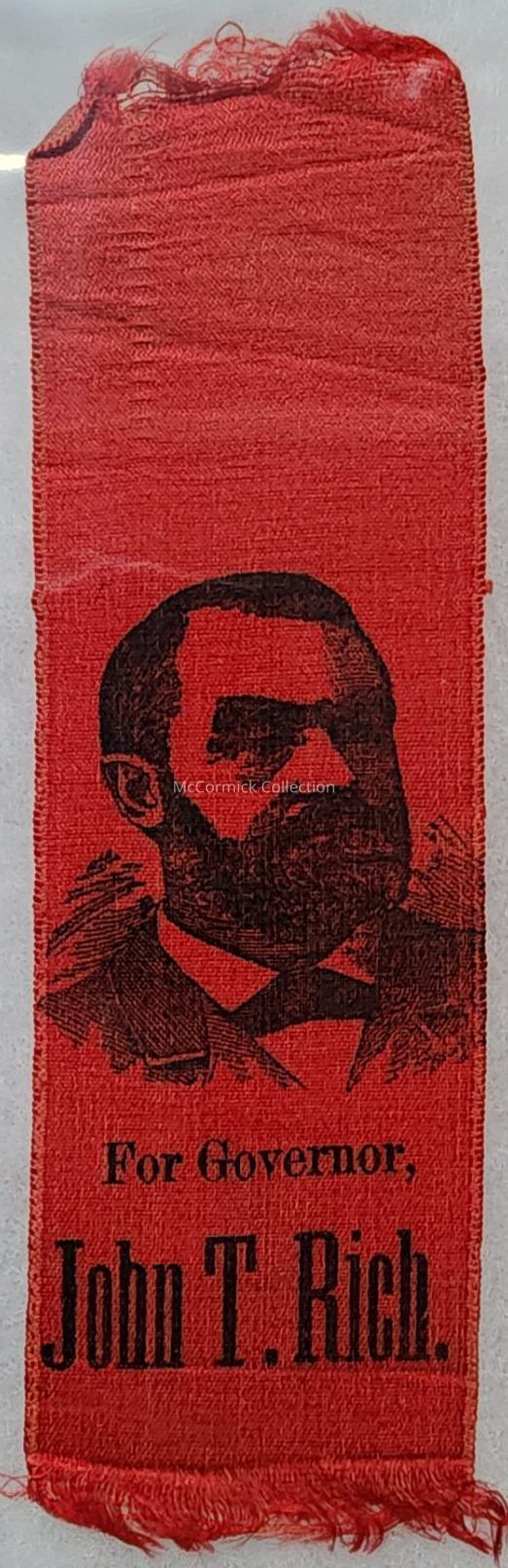 A 6" black and red political ribbon for John T. Rich for Governor. Circa 1890s.