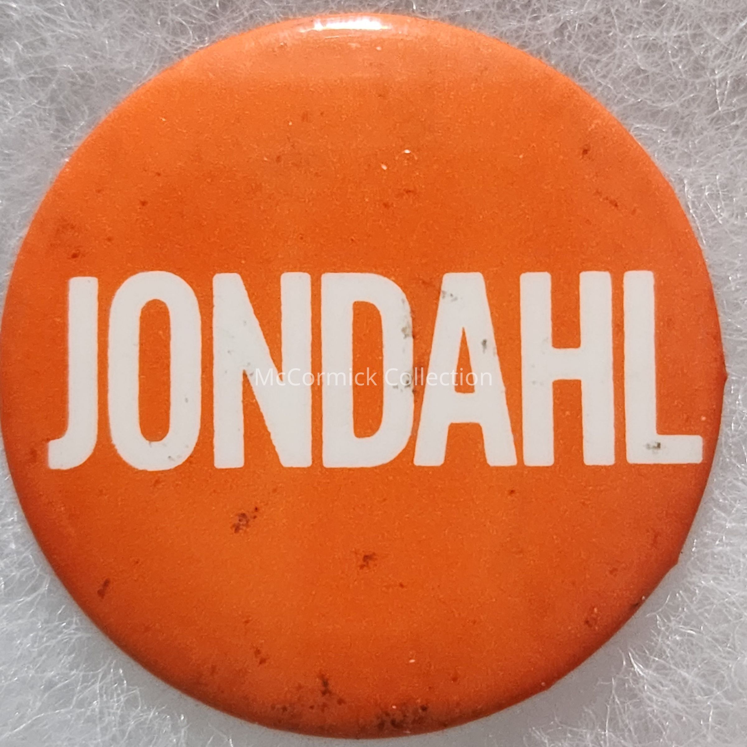 A 1.25" Orange and white political button for H. Lynn Jondahl, circa 1970s-80s legislative campaigns.