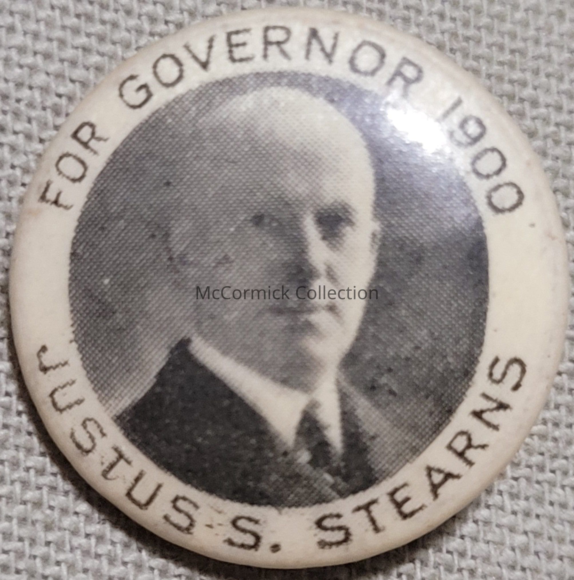 Political button for Justus S. Stearns for Governor of Michigan, circa 1900.