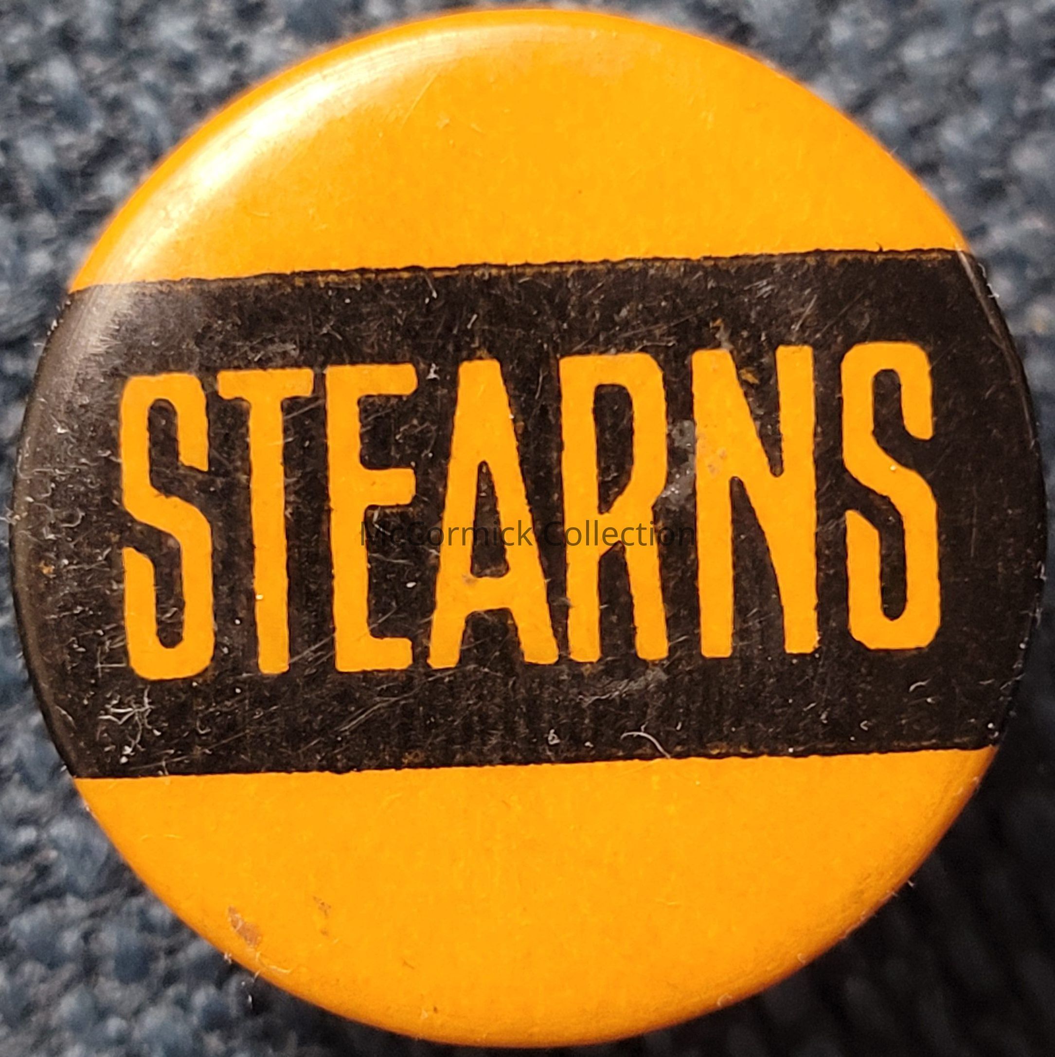 Orange and black political stud for Justus Stearns for Governor, 1900.