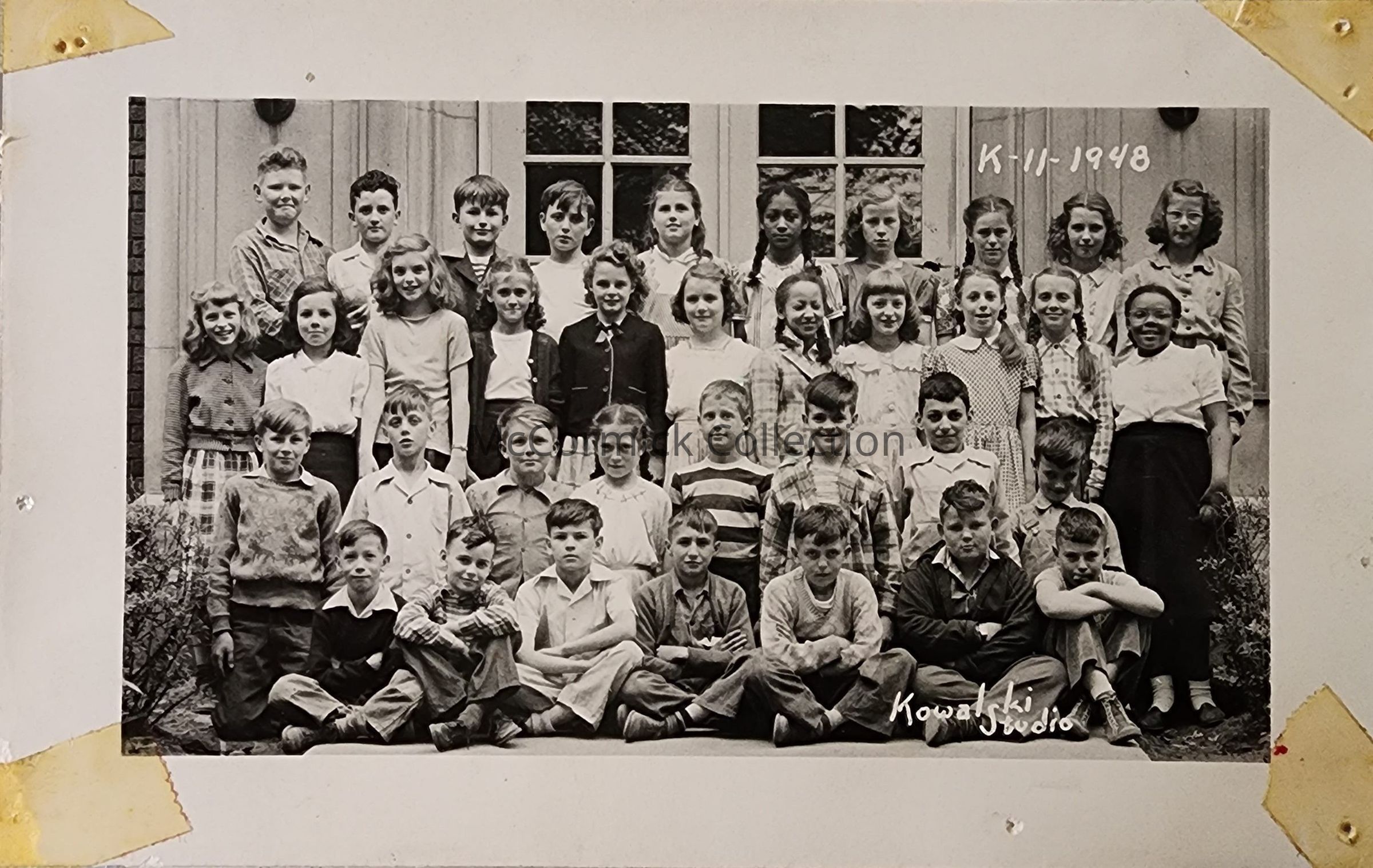 Real photo postcard of the Kalamazoo Street School Sixth Grade Class in 1948 by Lansing photographer Kowalski.
