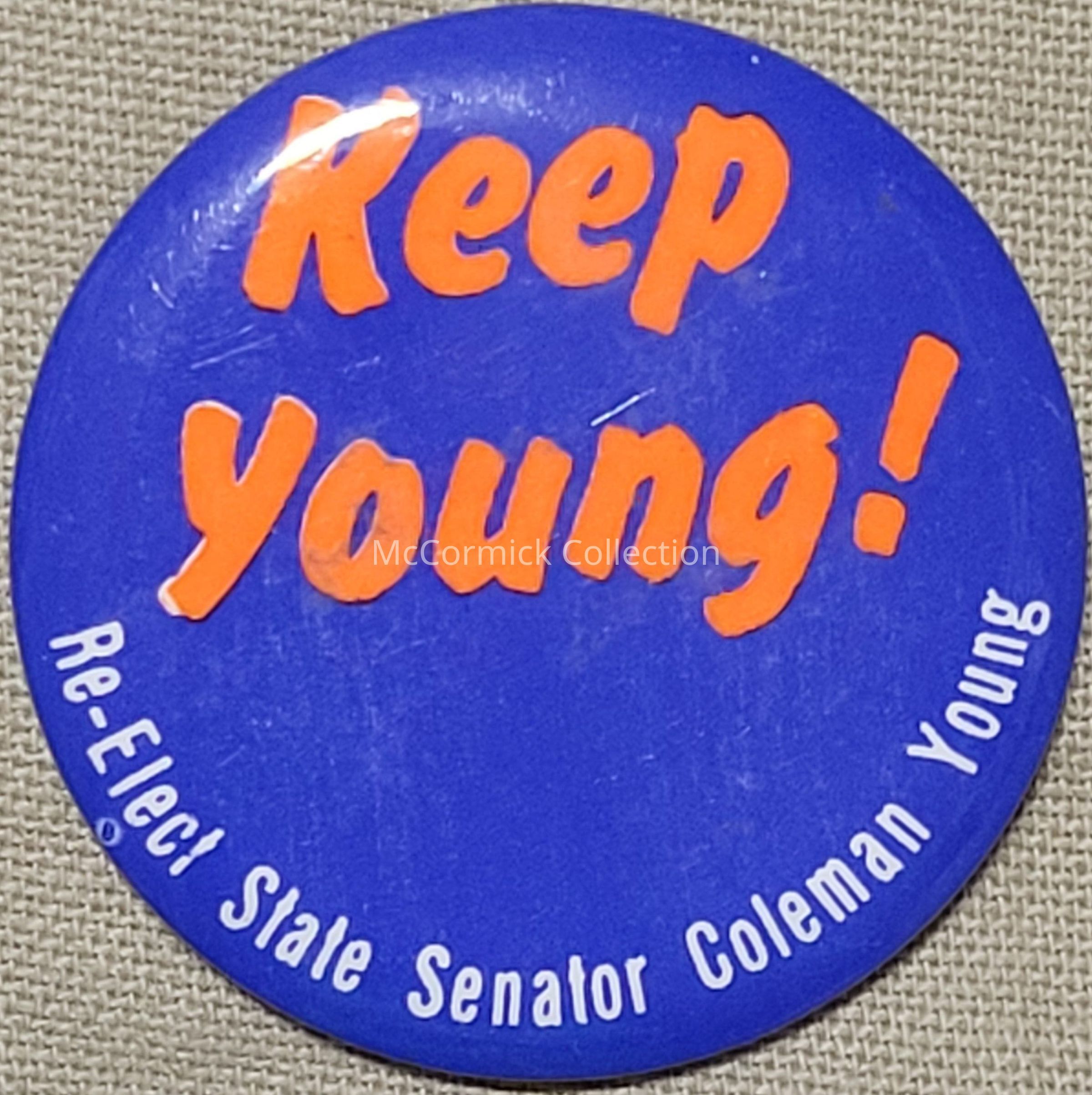 Political button, 1.75", for Coleman Young for State Senator, circa 1960s.