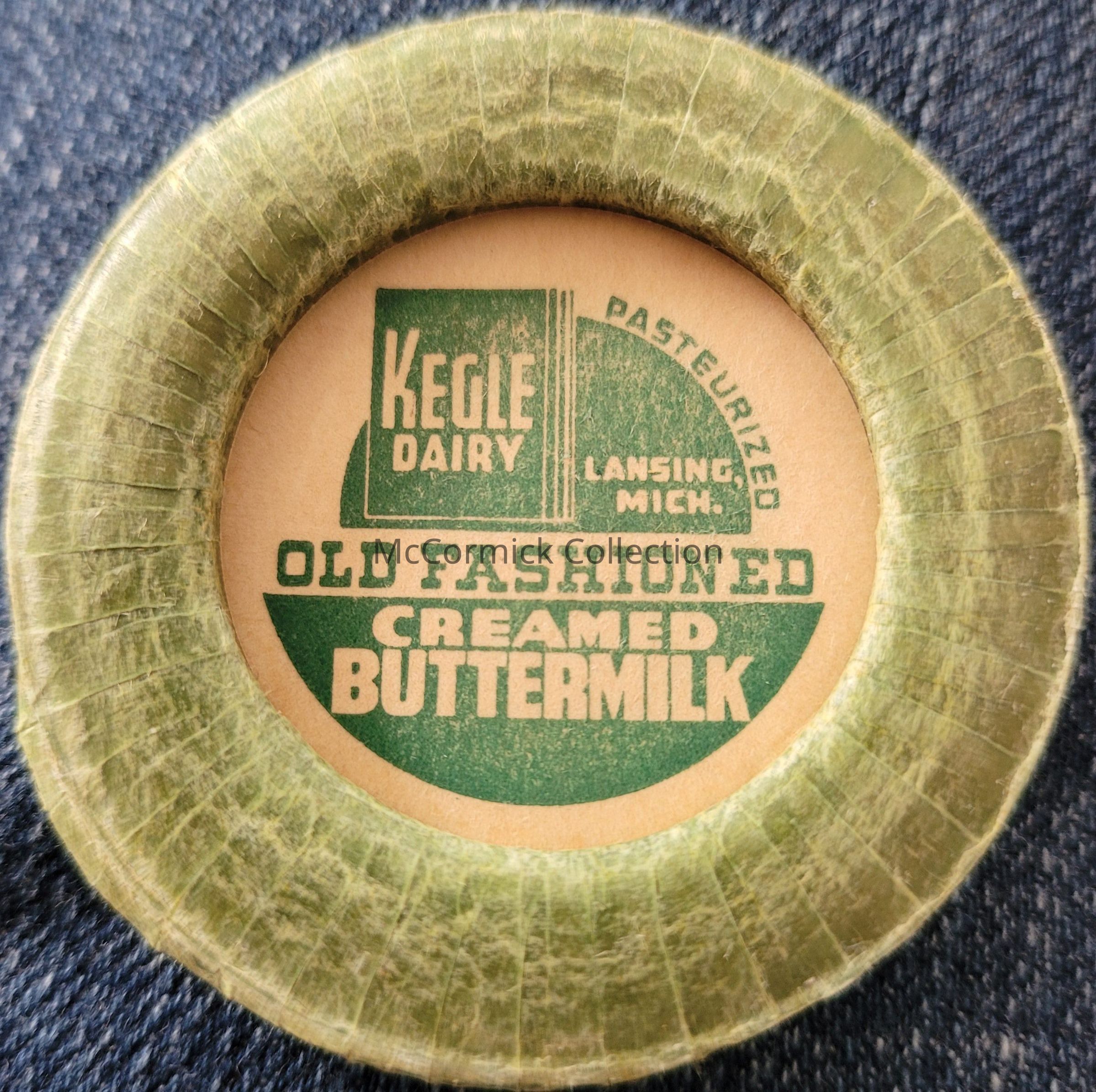 A paper/cardboard lid or cap from the Kegle Dairy of Lansing, Michigan, for Old Fashioned Creamed Buttermilk.