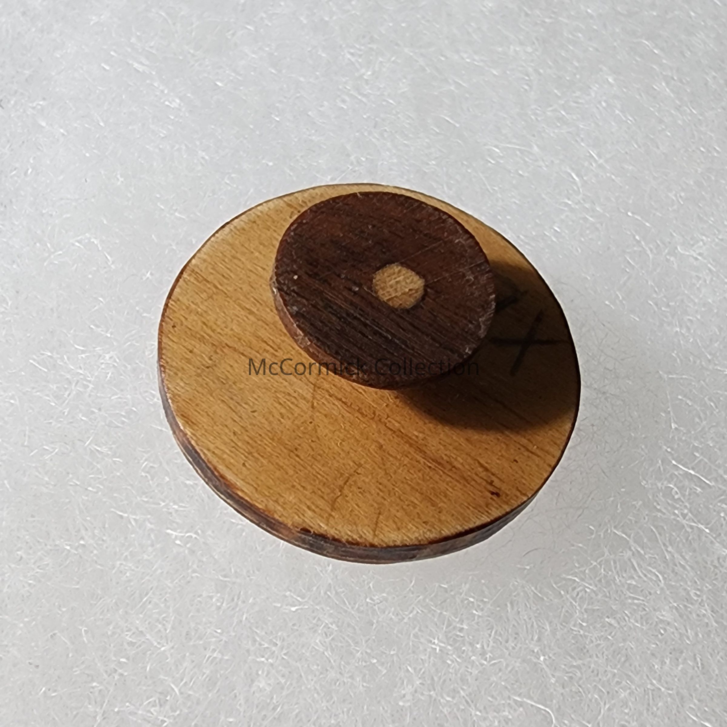 Wood folk art stud which reads "G.O.P. Kelly for Governor," for Harry Kelly for Governor of Michigan. Possibly one of a kind.