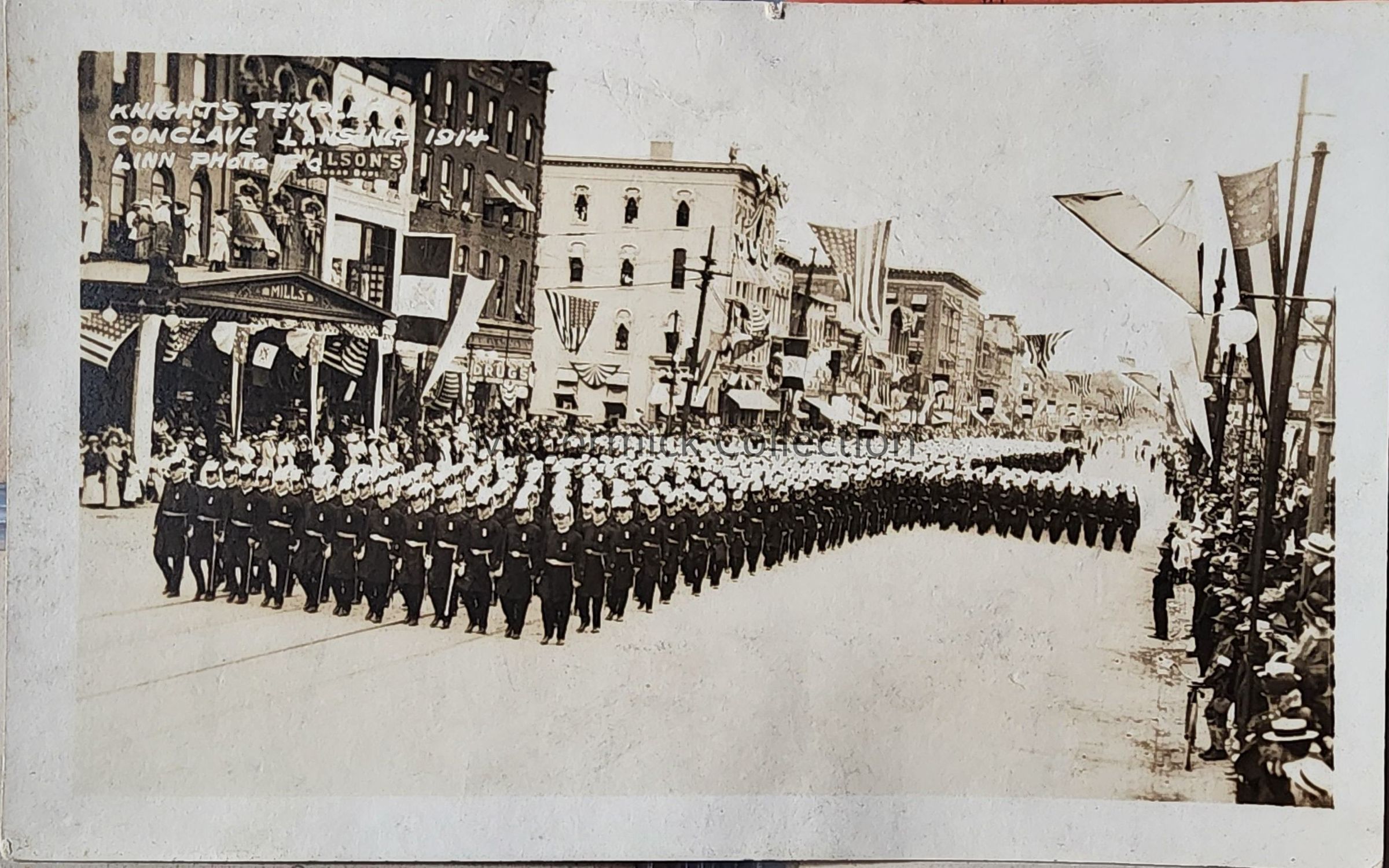 Real photo postcard of the 1914 Lansing Knights Templar Conclave by Lansing photographer Linn Photo Co. Postally unused