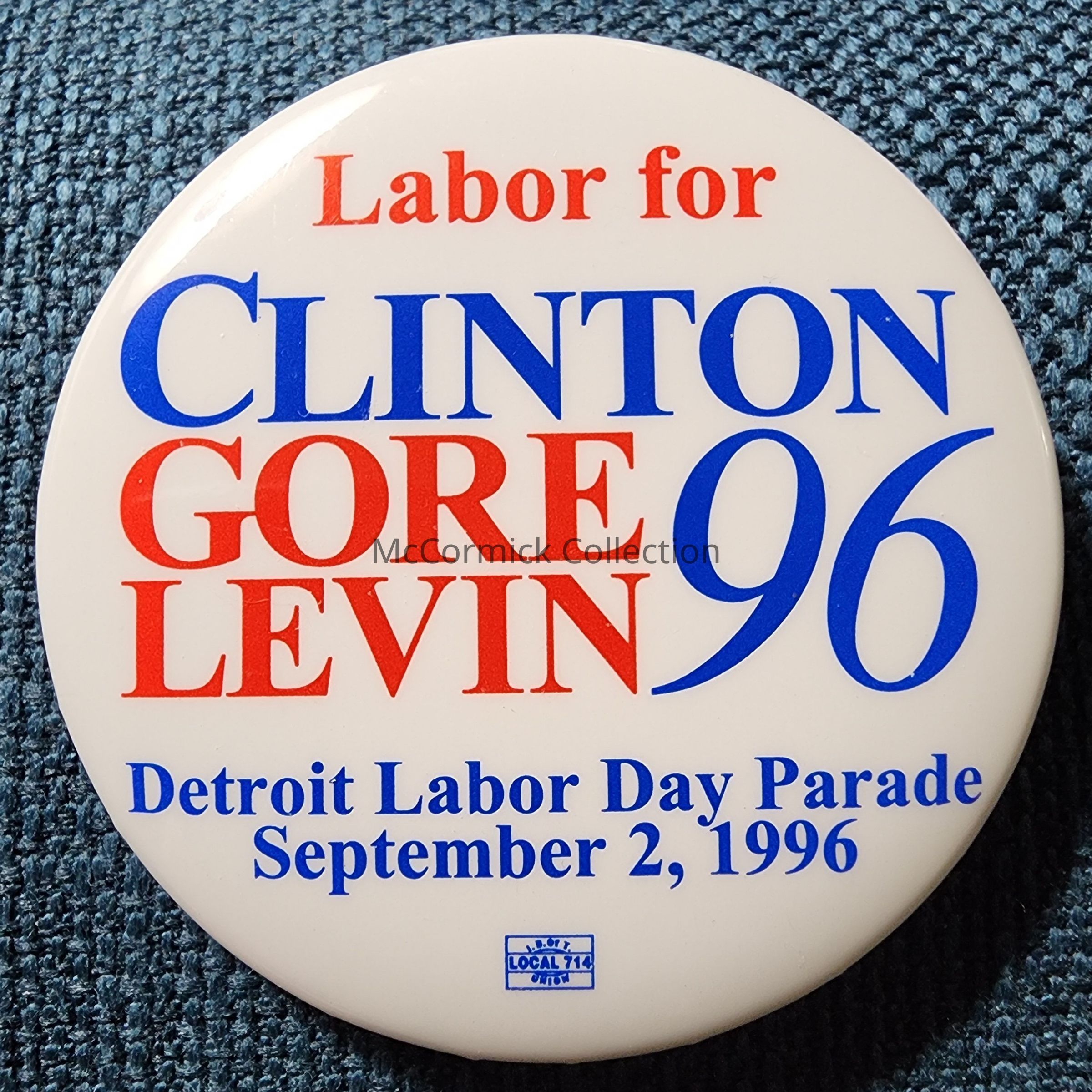 Labor for Clinton Gore Levin 96, Detroit Labor Day Parade ButtonDescription