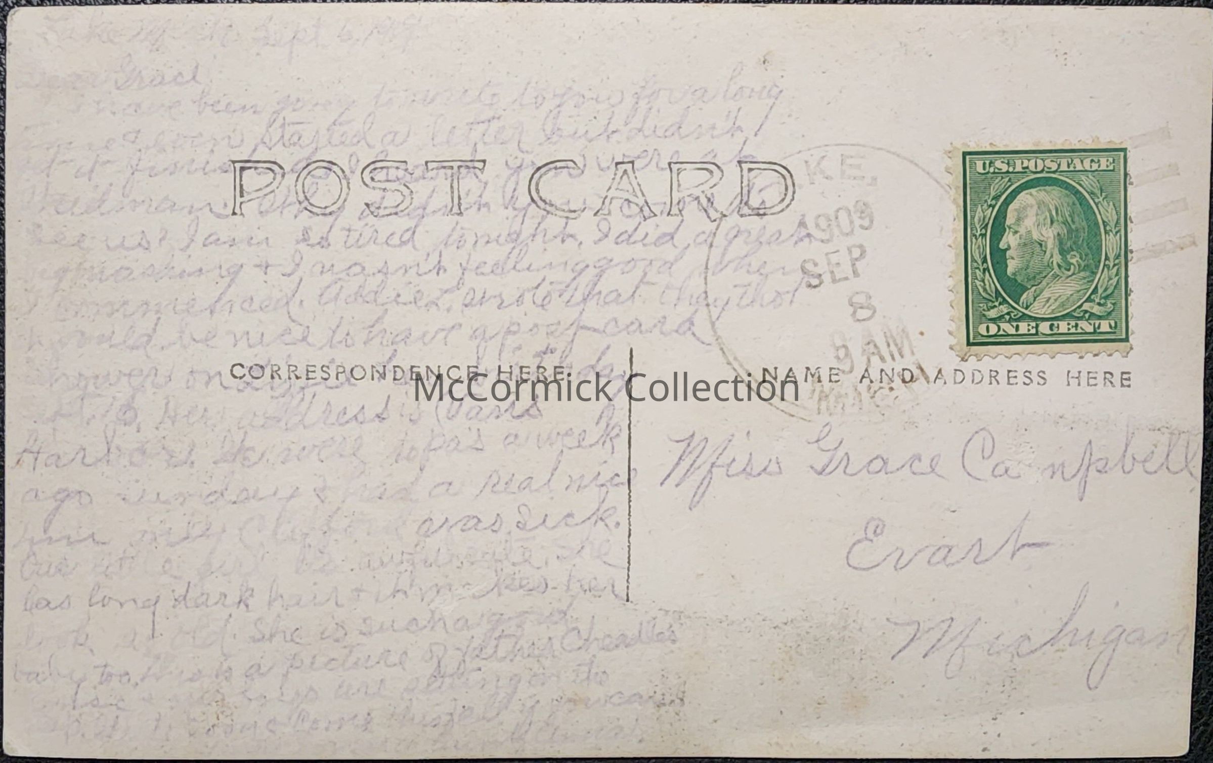 Real photo postcard of a farm. Postally used, 1909 Lake postmark. Addressed to Evart. A long message is written on the back.