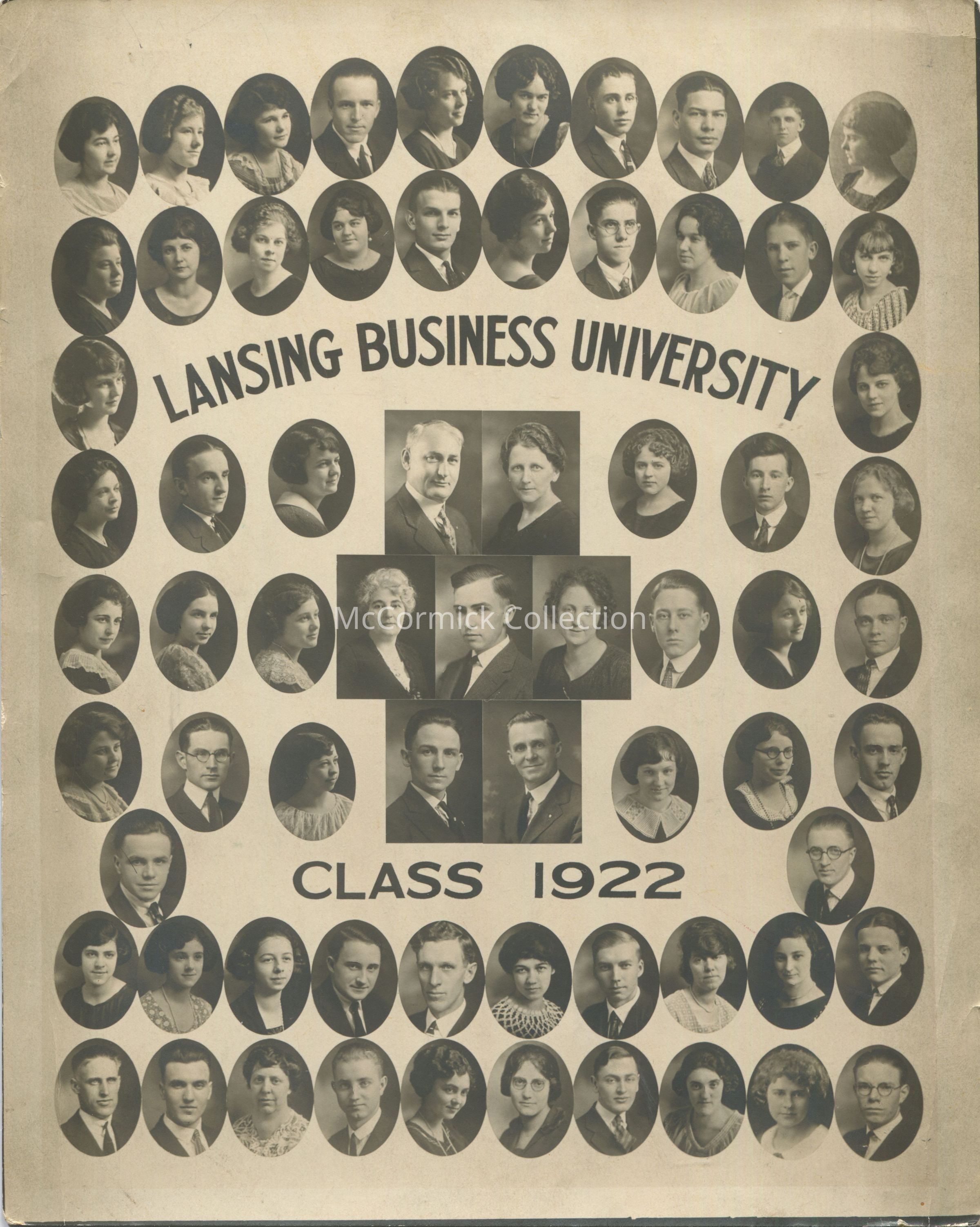 An 8"x10" composite photograph of the students of Lansing Business University Class of 1922. Included in the composite is my great grandfather John A. Ingraham under the "ity" in University.