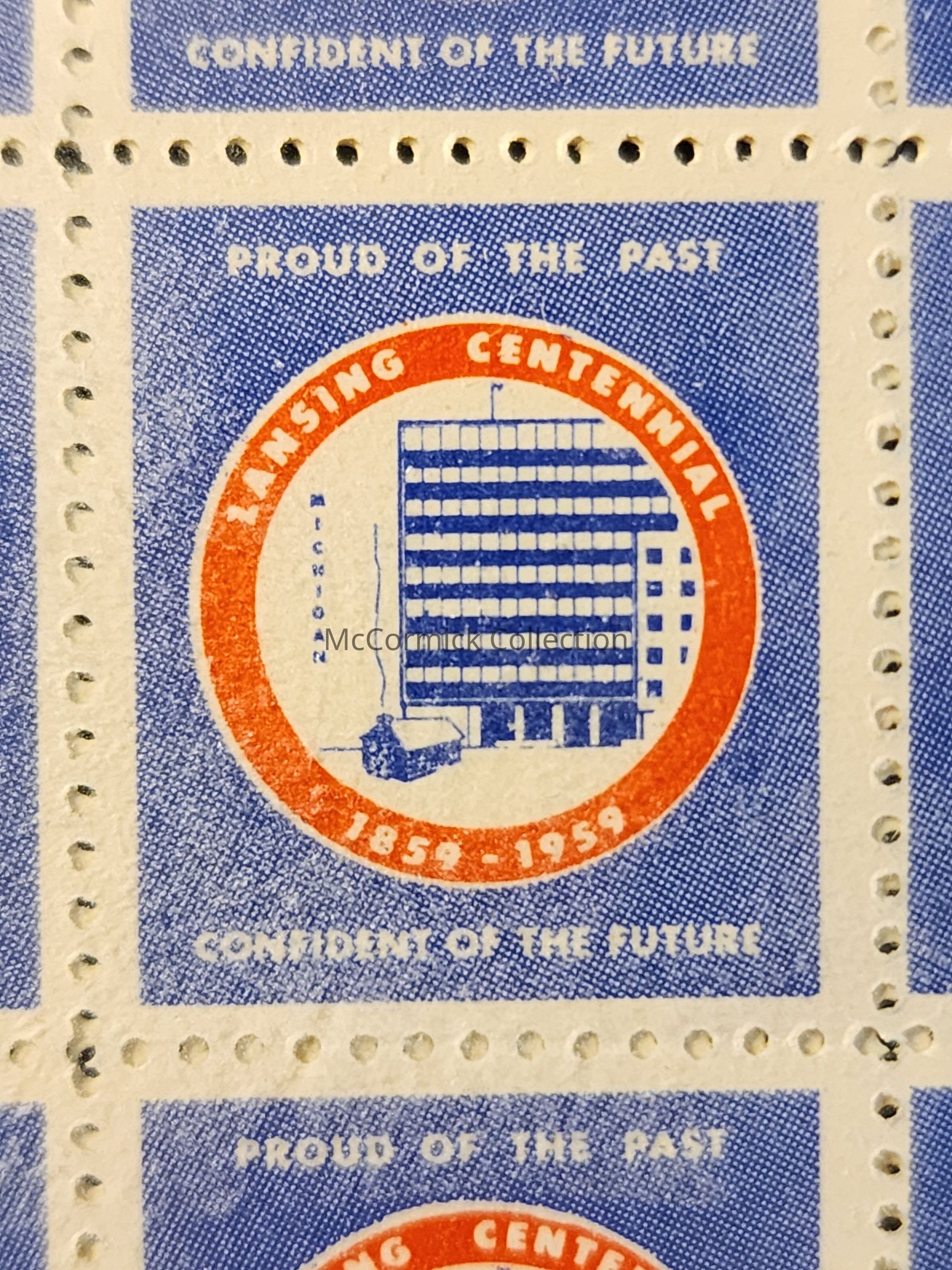 Lansing, Michigan, Centennial 1959 stampsheet.