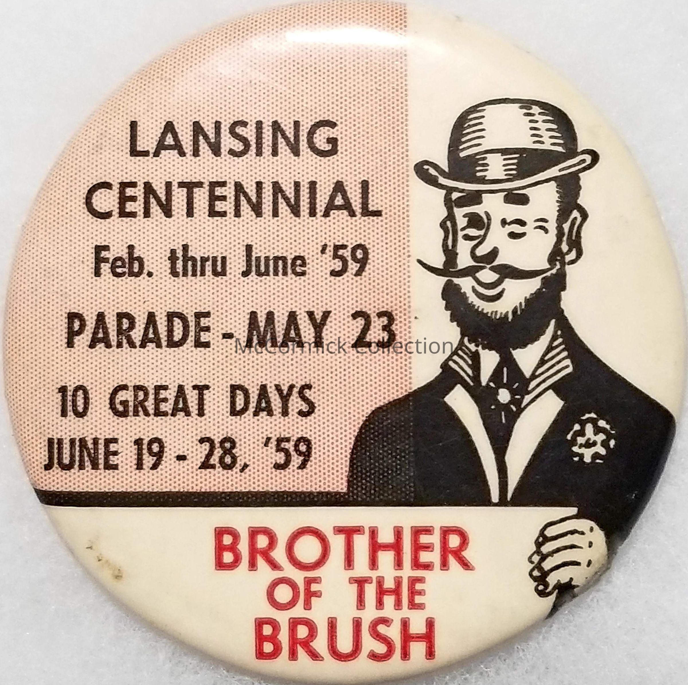 Brother of the Brush button from the 1959 Lansing, Michigan, centennial celebration.