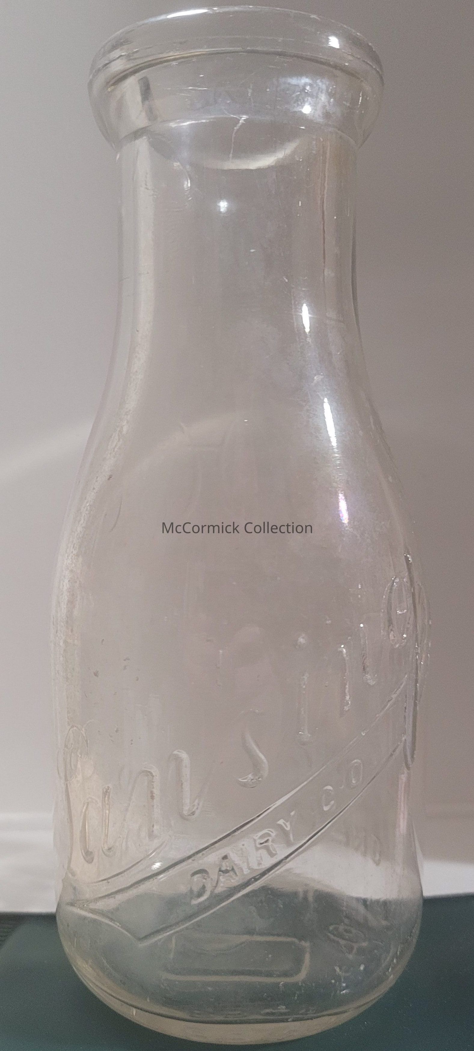 Standard embossed pint bottle with full script logo from the Lansing Dairy Co. Has the LBCo. block letters on the back.