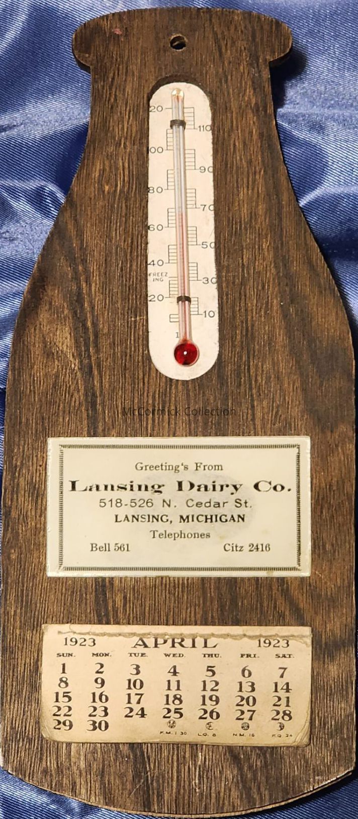 Lansing Dairy Wood Bottle Advertising Thermometer/Calendar