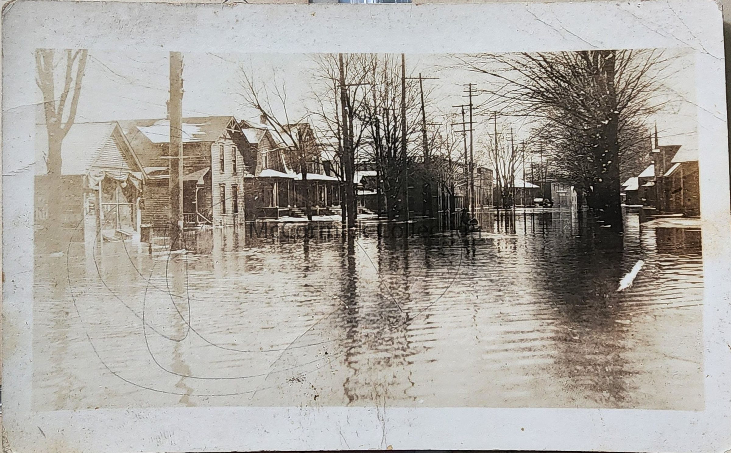 Real photo postcard of a flood on a Lansing, Michigan, street. Postally unused.