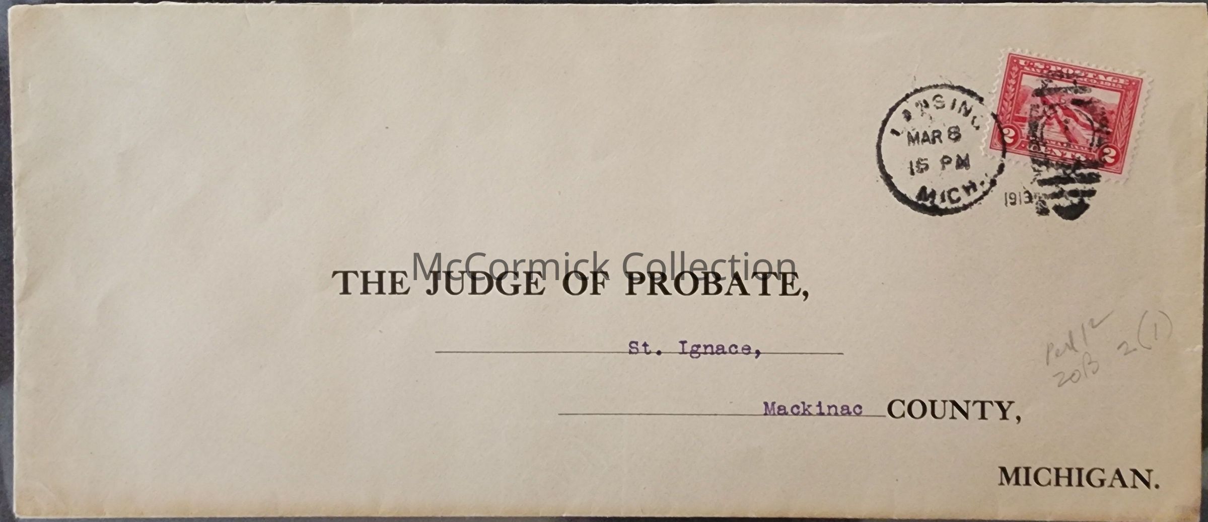St. Ignace, Mackinac County, Judge of Probate, envelope.