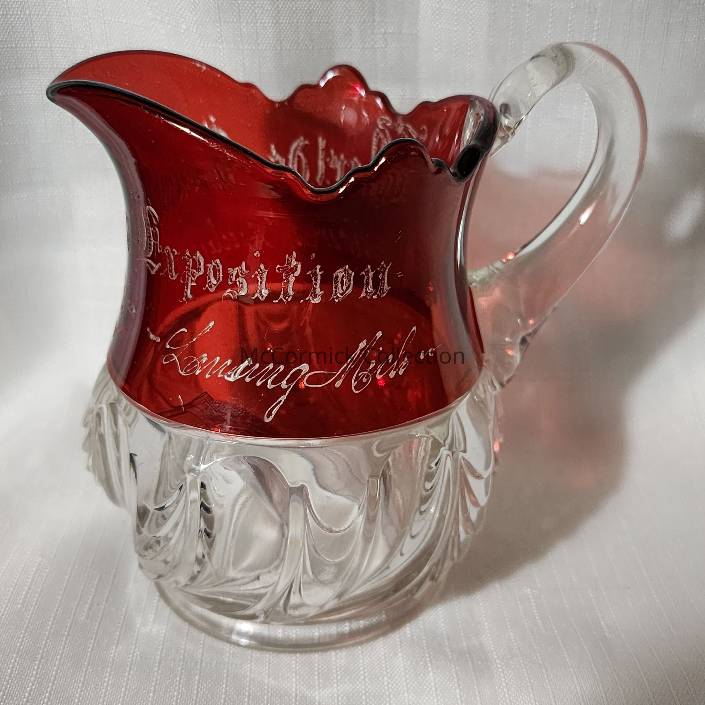 Lansing, Mich., Columbian Exposition Ruby Flashed Glass Souvenir Pitcher