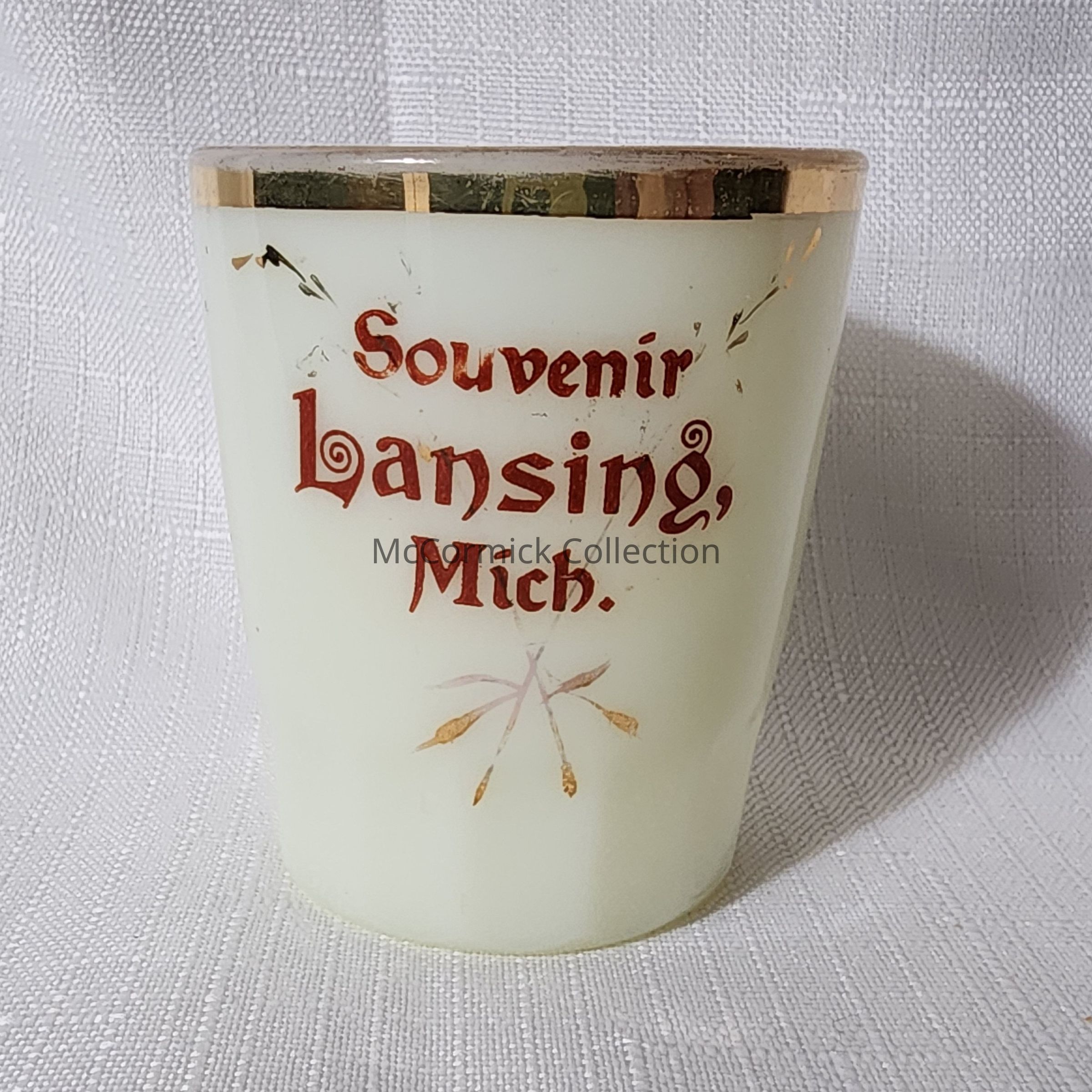 Lansing, Mich., Custard Glass Souvenir Toothpick Holder