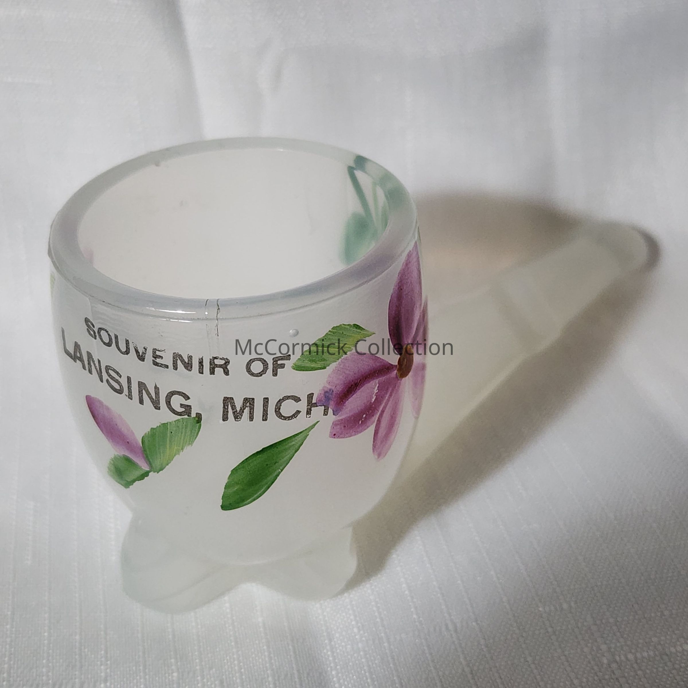 Souvenir of Lansing, Michigan, glass pipe hand painted with flowers.