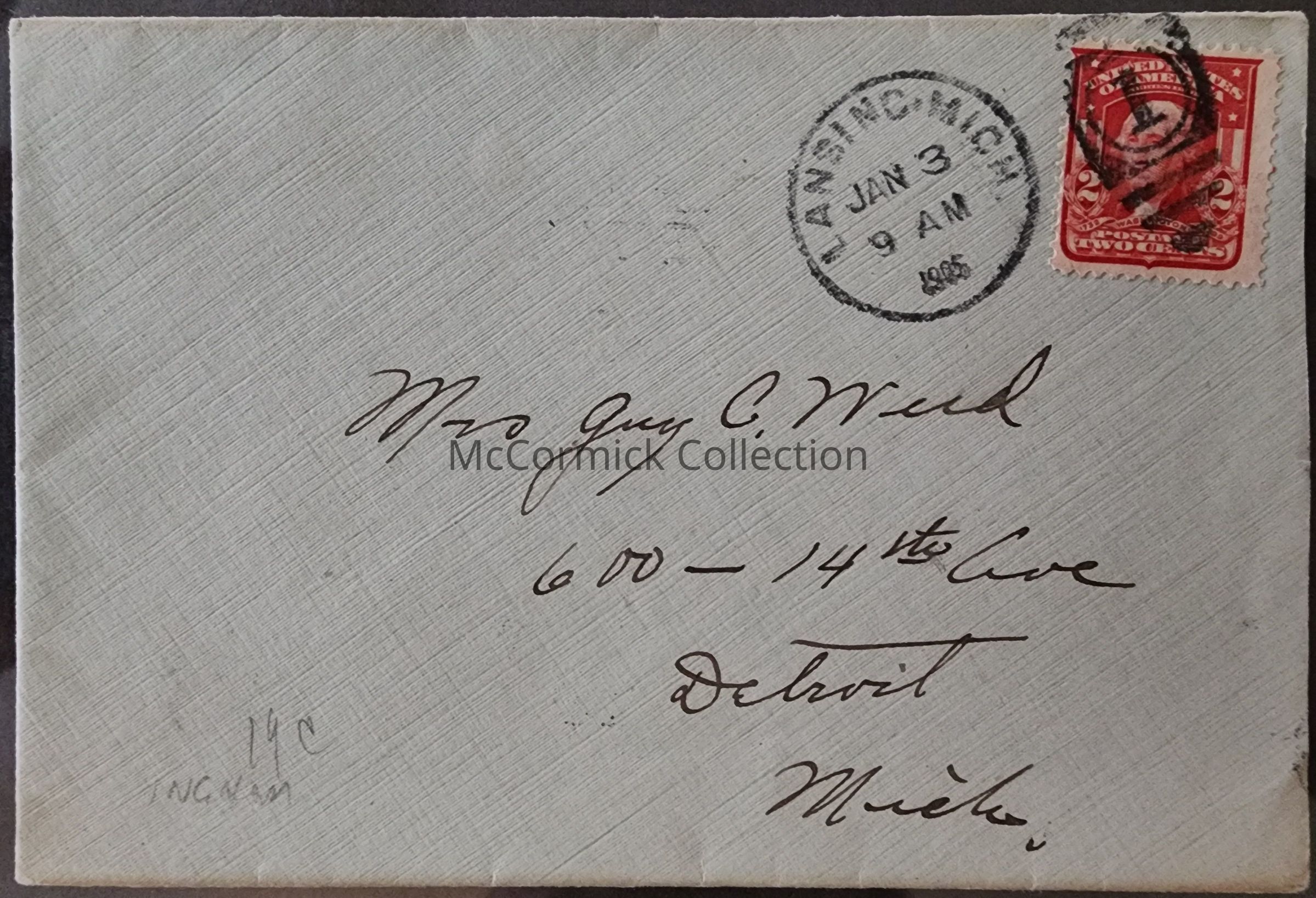 Lansing, Mich., Time Postmark, 1905, Postal Cover