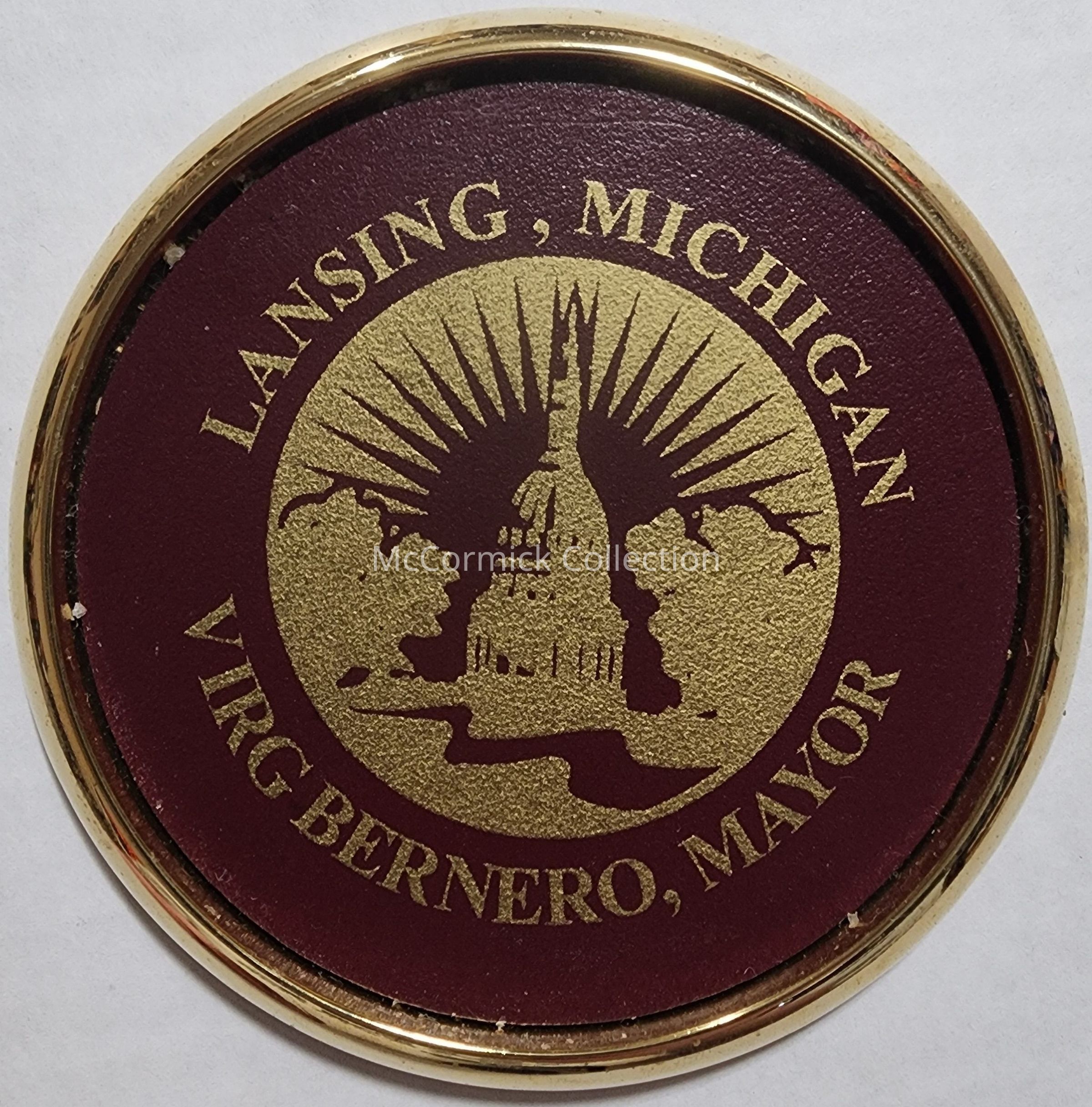 Lansing Mayor Virg Bernero Coaster. Acquired fom the Alfreda Schmidt Living Estate Sale, 2018.