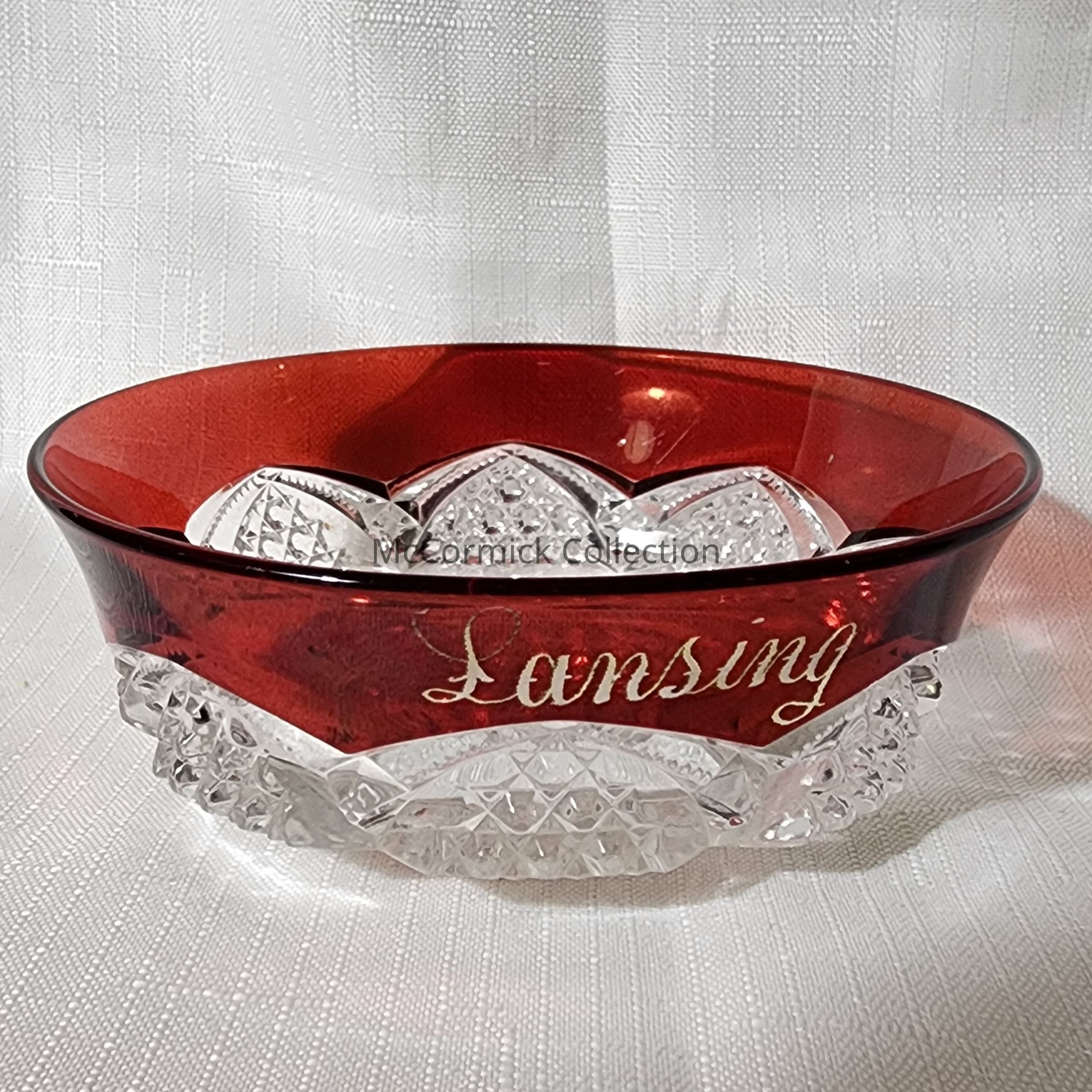 Lansing Ruby Flashed Glass Souvenir Bowl