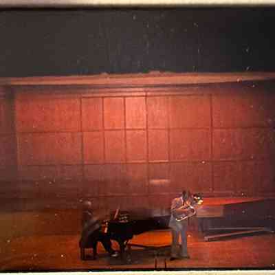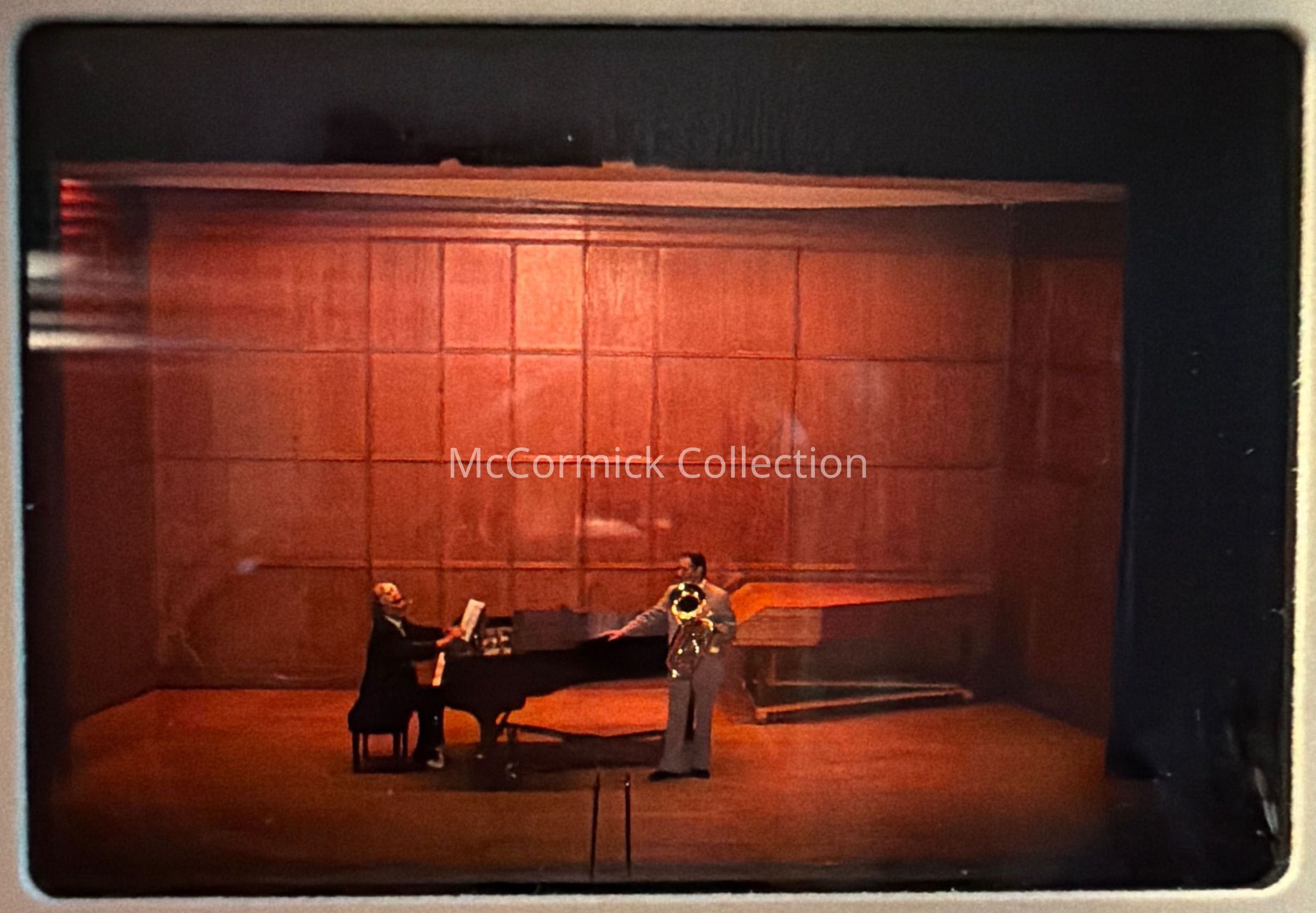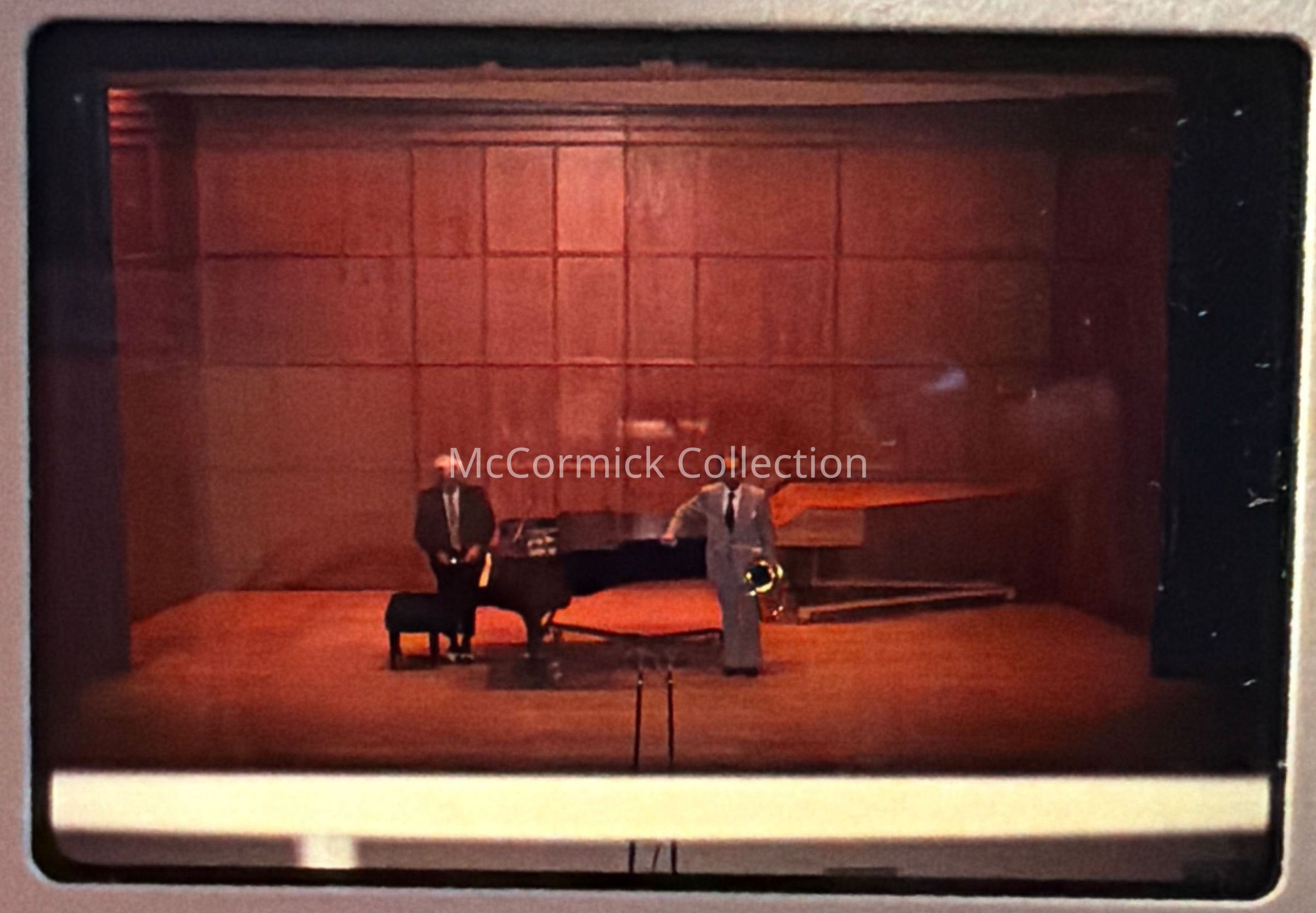 Series of three photographic slides of Leonard Falcone and accompanist Joseph Evans on piano in July 1974. Gift of Cece Falcone.