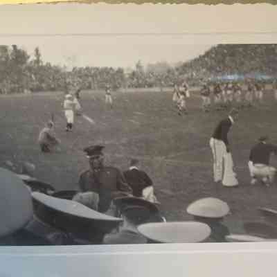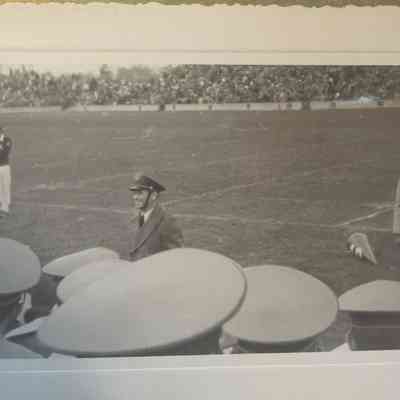 Leonard Falcone and Band on Sideline, 1947, Photo SeriesDescription