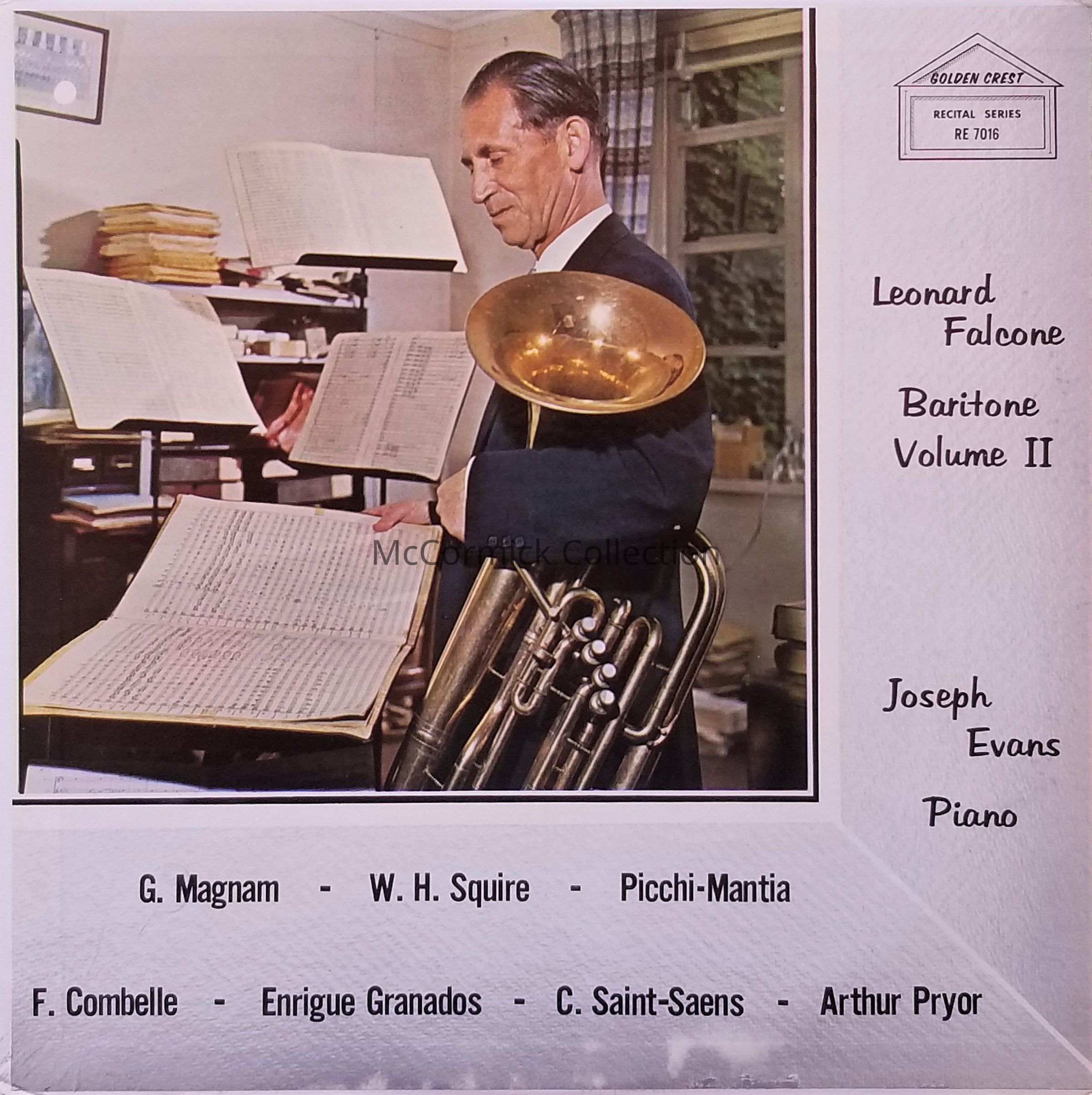 The circa 1965 record titled "Leonard Falcone Baritone Volume II," featuring Joseph Evans on piano, on the Golden Crest label.