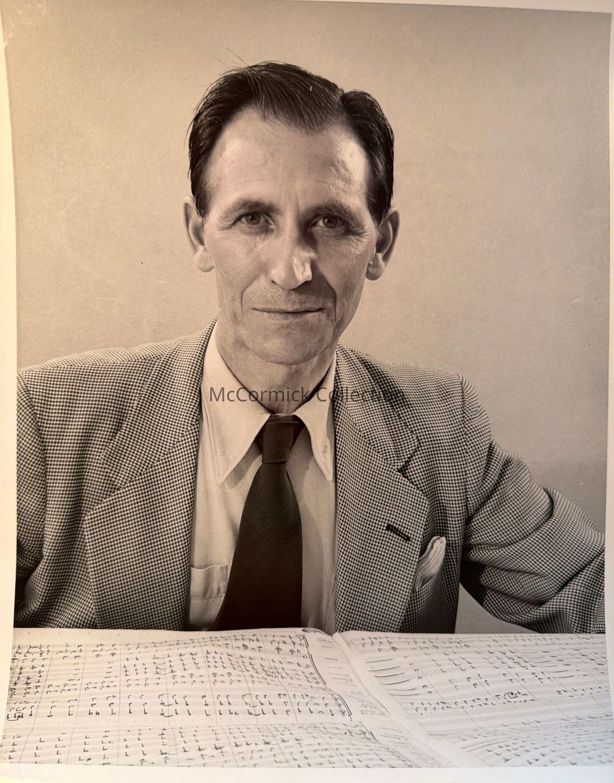 Portrait photograph of Michigan State College director of bands Leonard Falcone in July 1953. Gift of Cece Falcone.