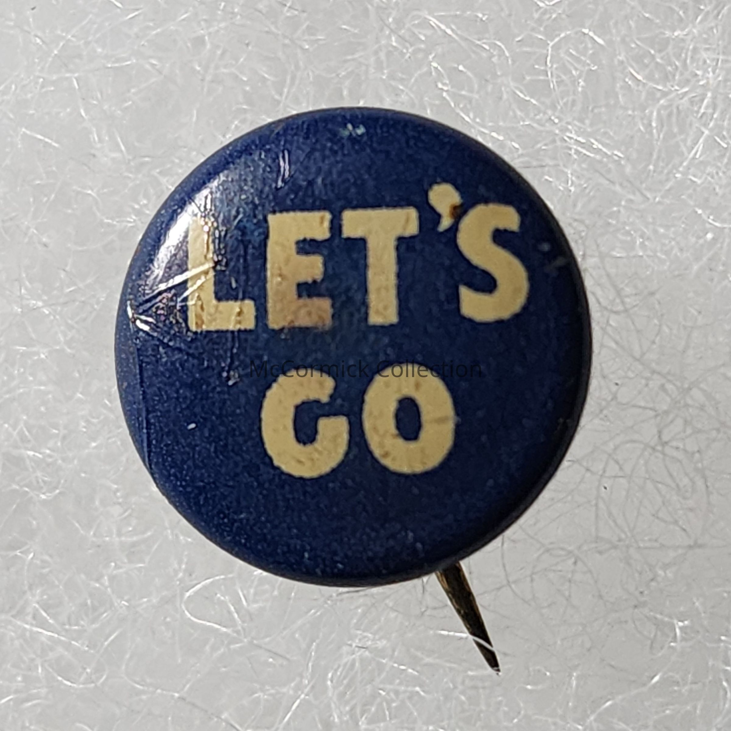 A tiny blue and white political button with the "Let's Go" slogan for Albert Cobo for Governor.