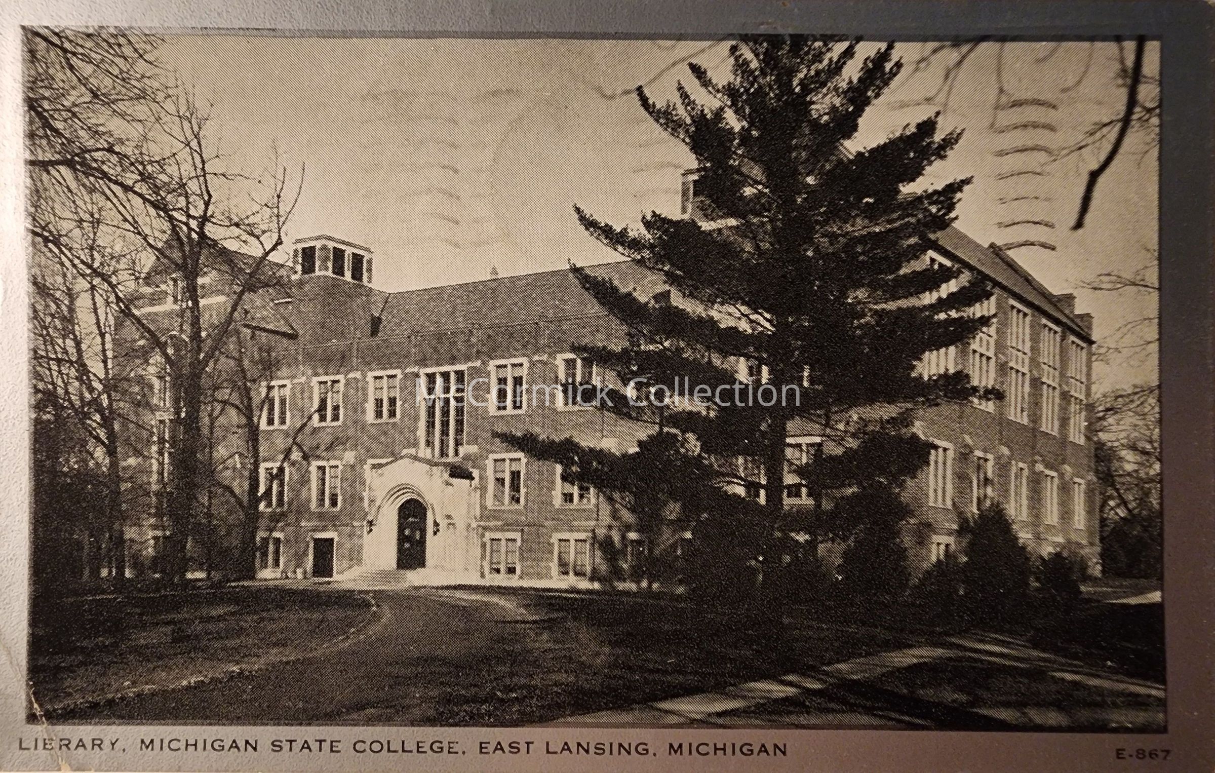 Library, Michigan State College, East Lansing, Mich., Postcard
