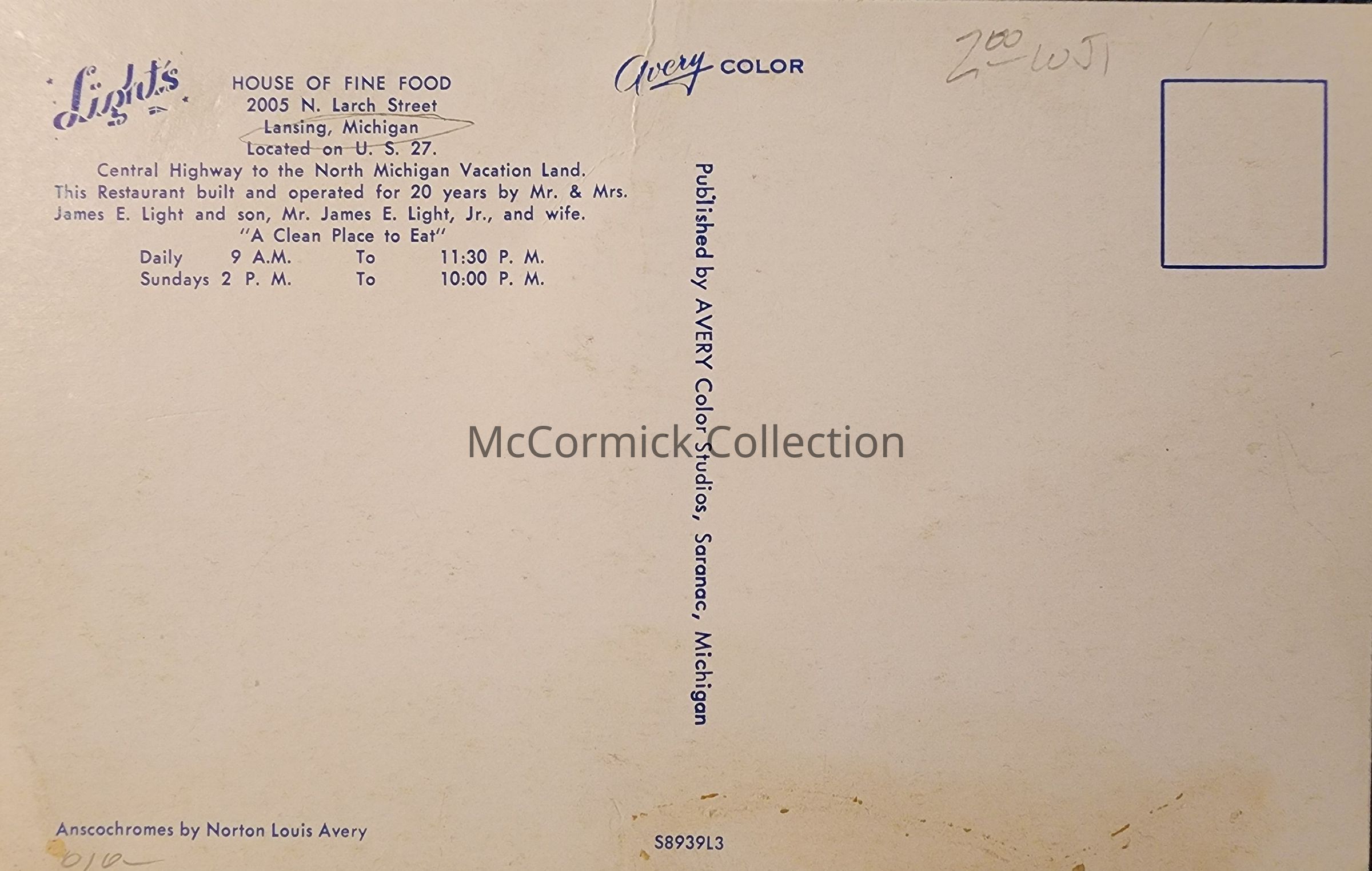 Lights House of Fine Food, Lansing, Michigan, Postcard