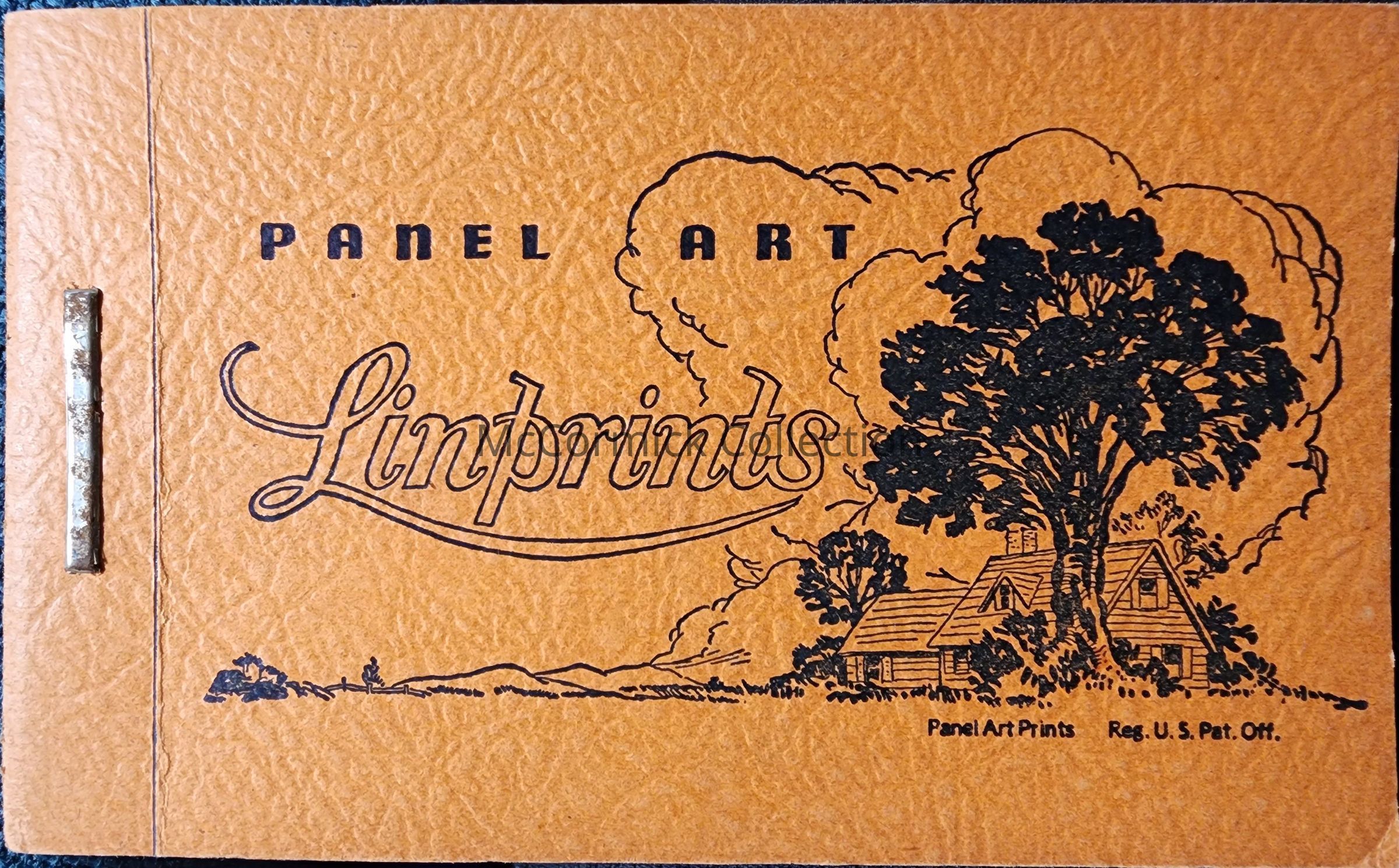 Orange Linprints folder of snapshots of a brick cottage house, possibly Houghton Lake, Michigan. From Siebert Estate.