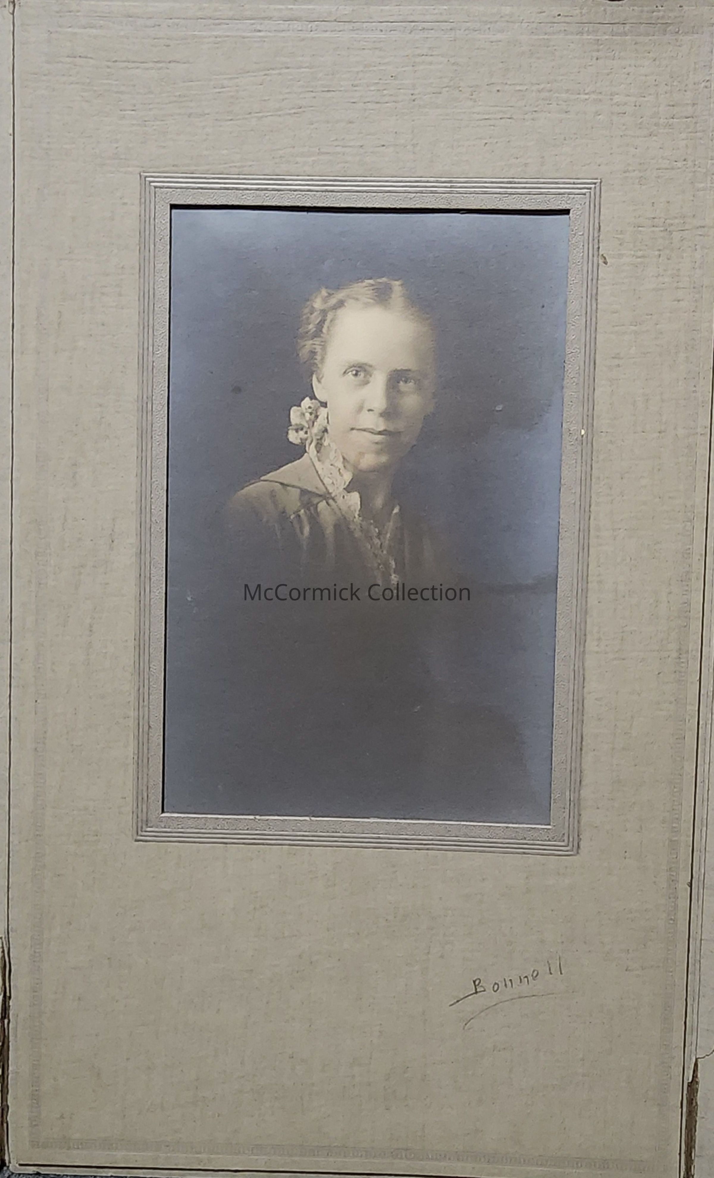 Folder frame mounted photograph of Lois Chase by Lansing photographer Bonnell. Lois Chase was the elected treasurer of the City of Lansing in 1925-1926, 1929-1930, and 1933-1934. She was the third woman to hold elective office in the City of Lansing. She was a longtime city and county employee when not in office.