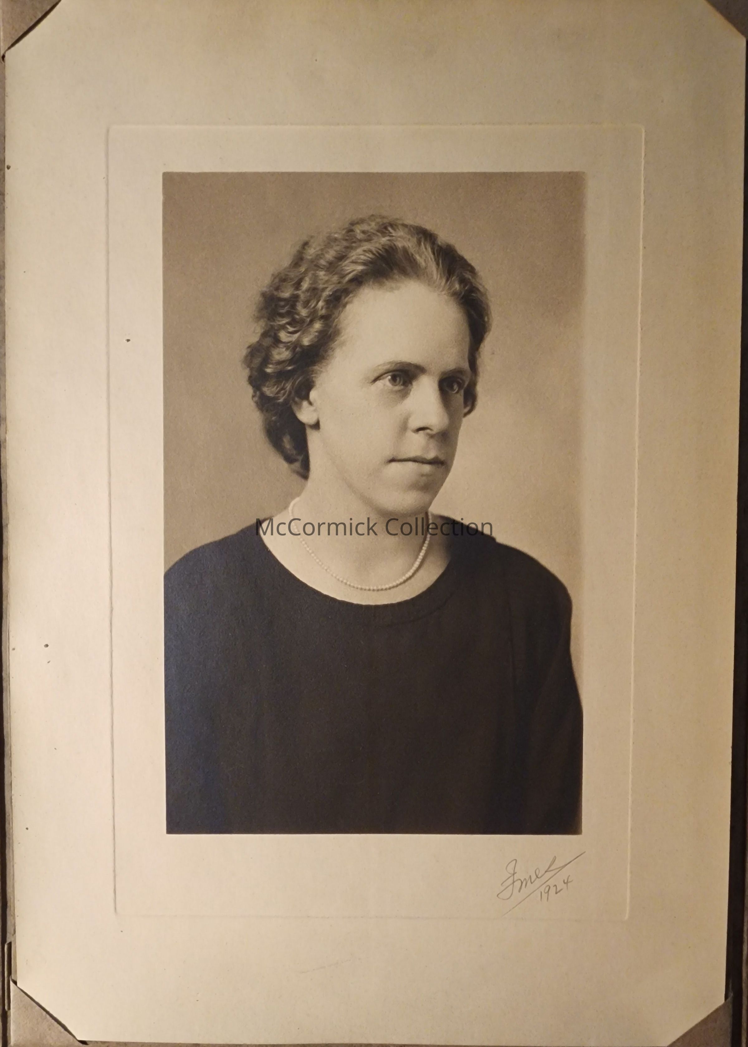 Folder frame mounted photograph of Lois Chase, Lansing City treasurer, by Lansing photographer Imes. Dated 1924. Two copies.