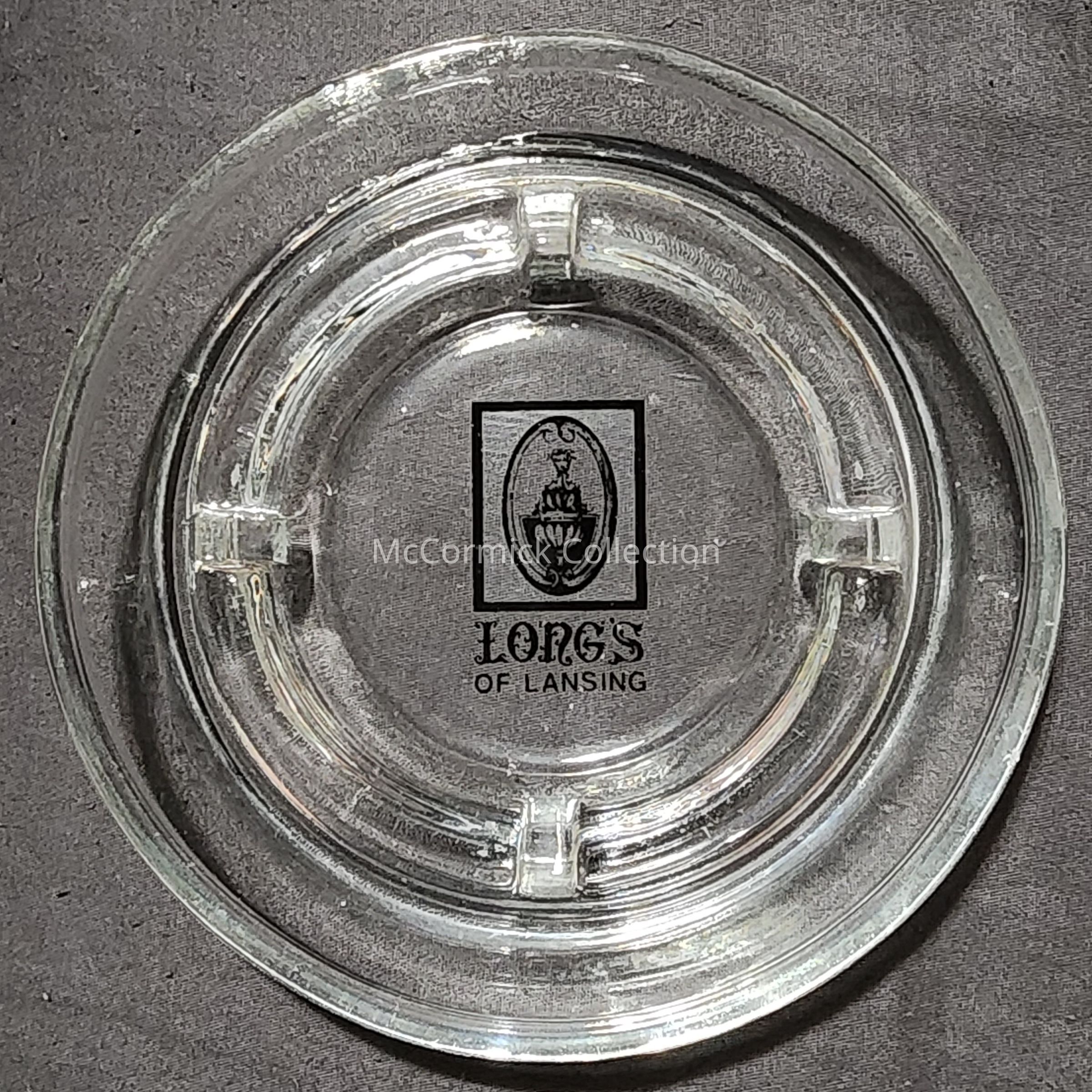 A glass advertising ashtray for Long's of Lansing, Michigan.