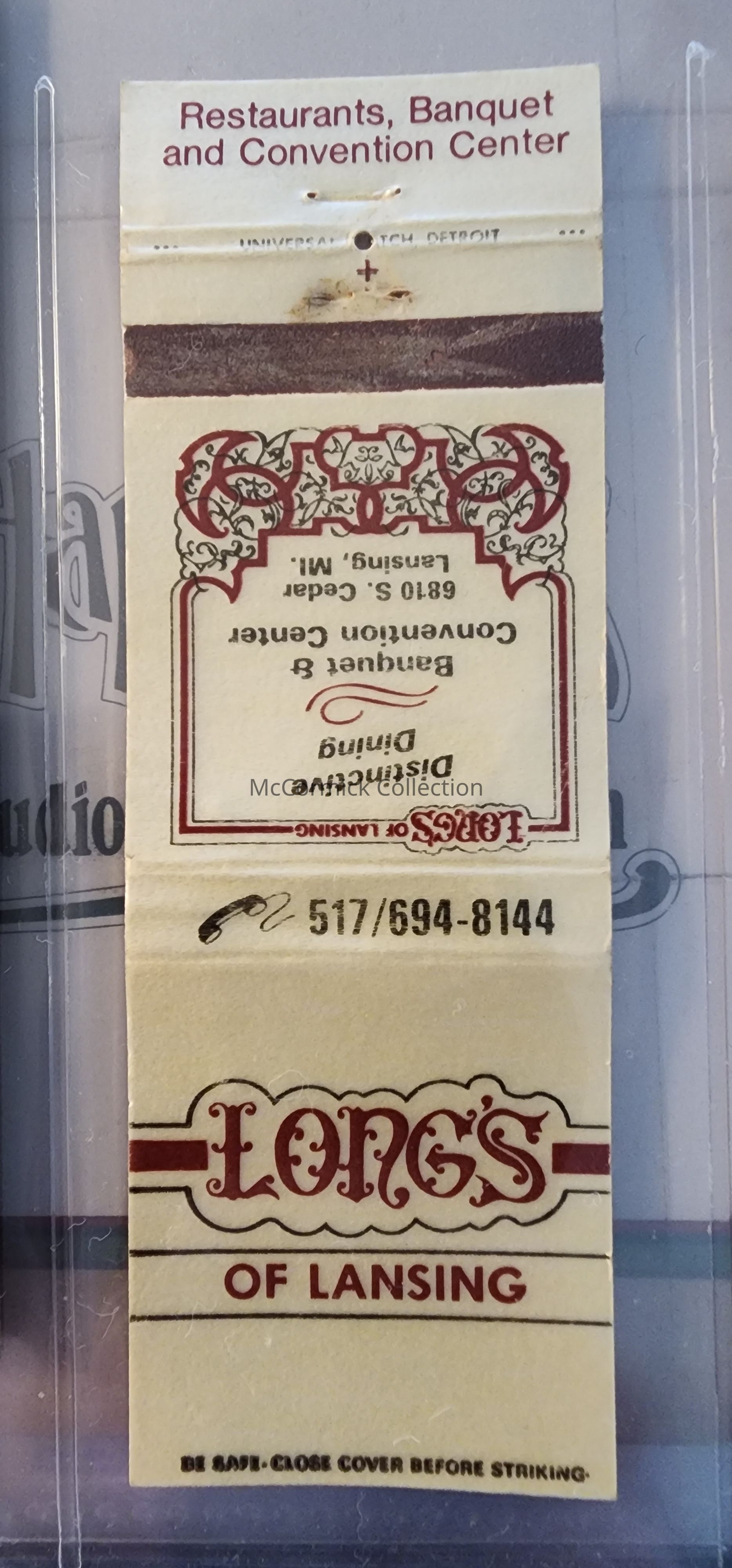 Long's of Lansing, Lansing, Michigan, Matchbook